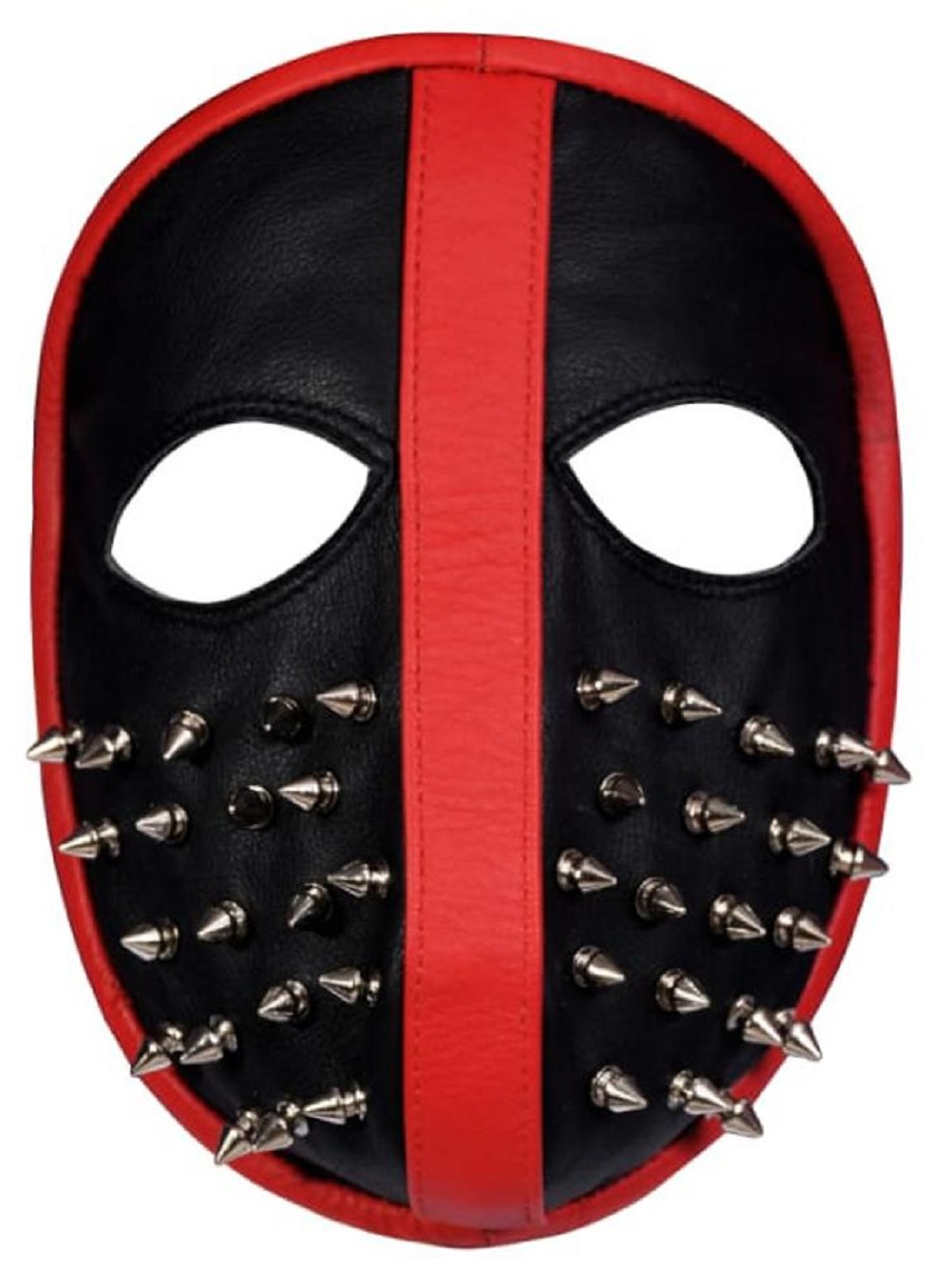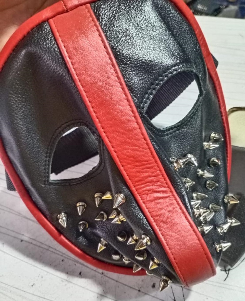 Unixes Silver Studded Leather Full Face Mask Red & Black Tree Spike Leather Mask