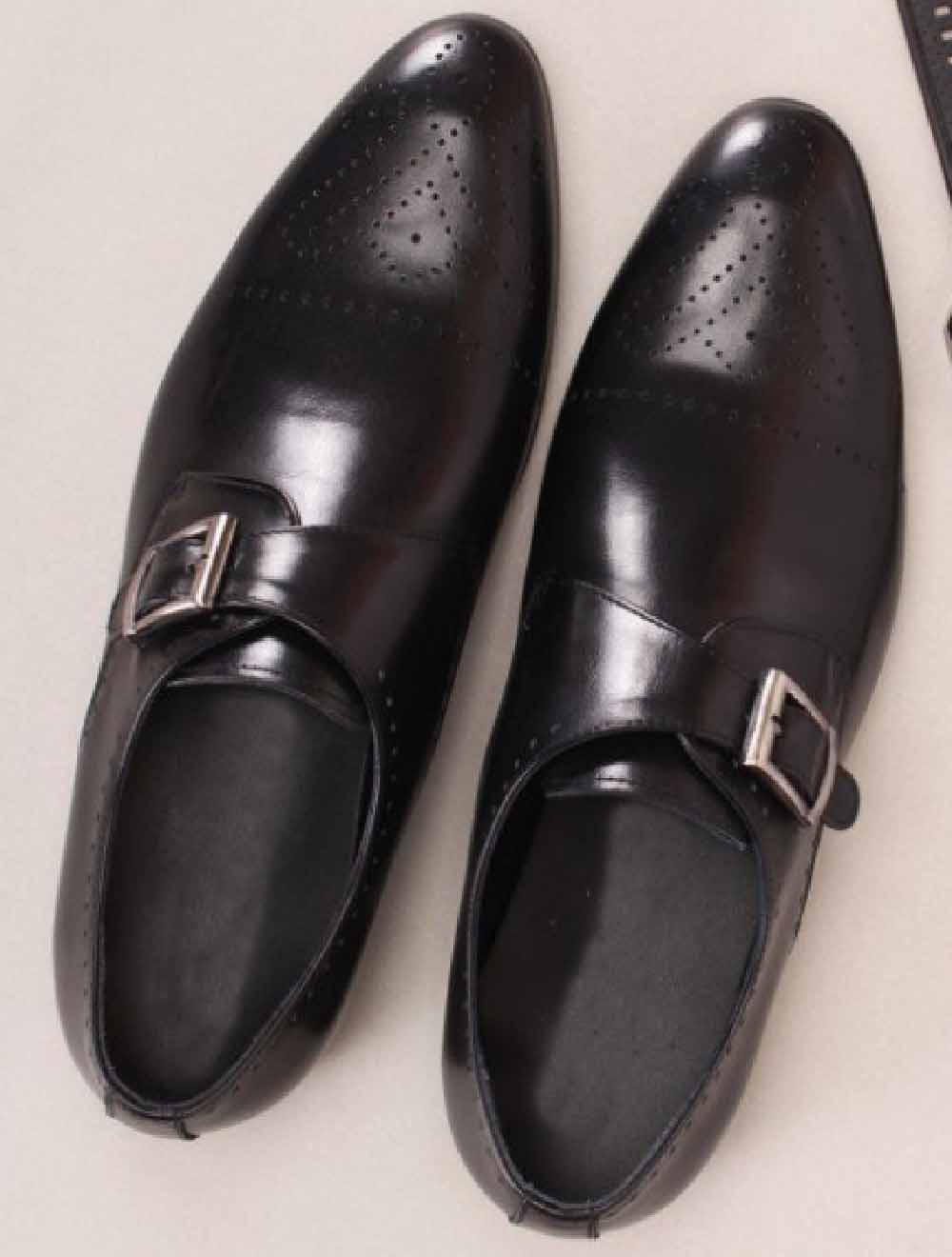 ELEGANT SINGLE MONK STYLE DARK BROWN MEDALLION TOE REAL LEATHER WEDDING SHOES