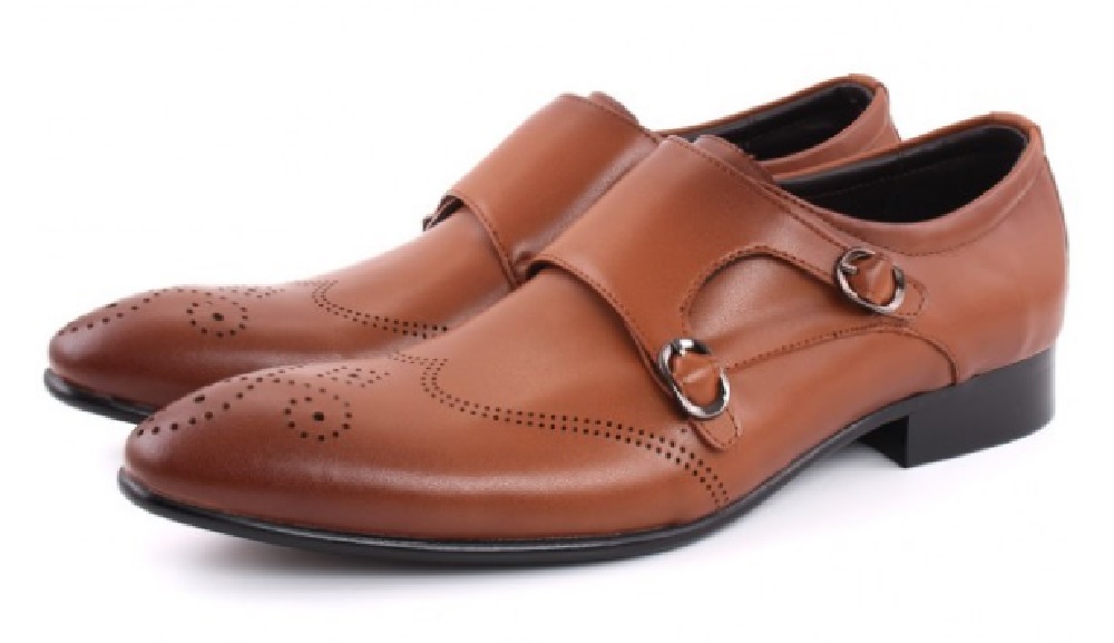 HANDMADE TAN BROGUE WINGTIP REAL LEATHER MEN FORMAL DRESS MONK SHOES