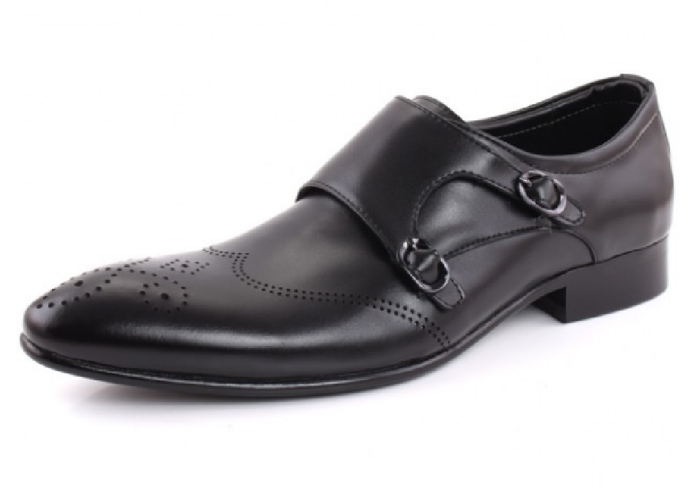 Customize Handmade Black Color Brogue Toe Double Strap Real Leather Monk Shoes