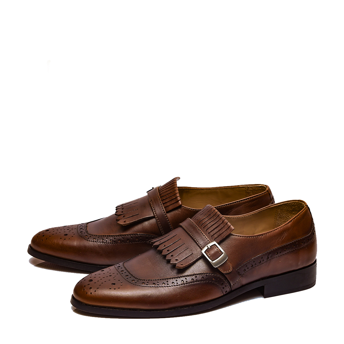 New Brown Patina Fringes Buckle Strap Brogue Toe Real Leather Men Wedding Shoes