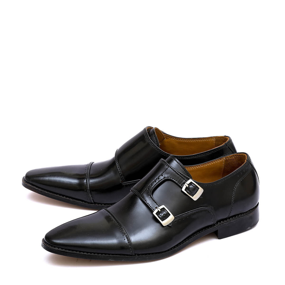 Adorable Made To Order Black Dual Monk Strap Real Leather Men Pointed Toe Shoes