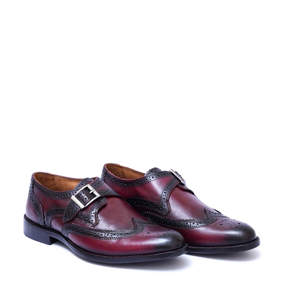 Business Class Burgundy Medallion Wingtip Monk Strap Genuine Leather Men Shoes