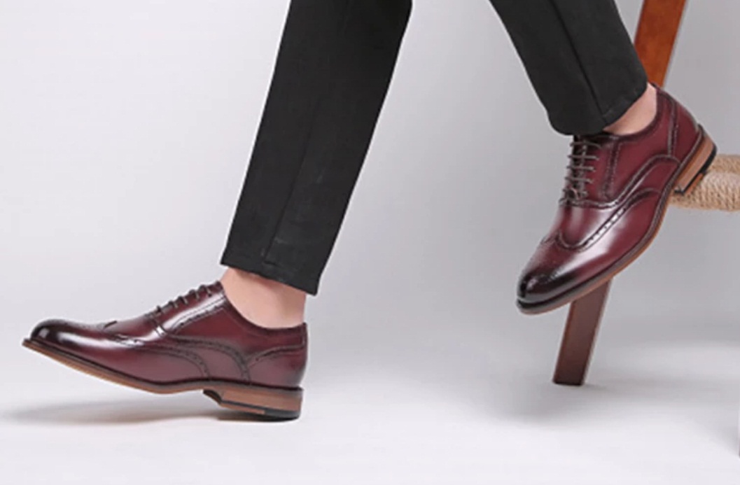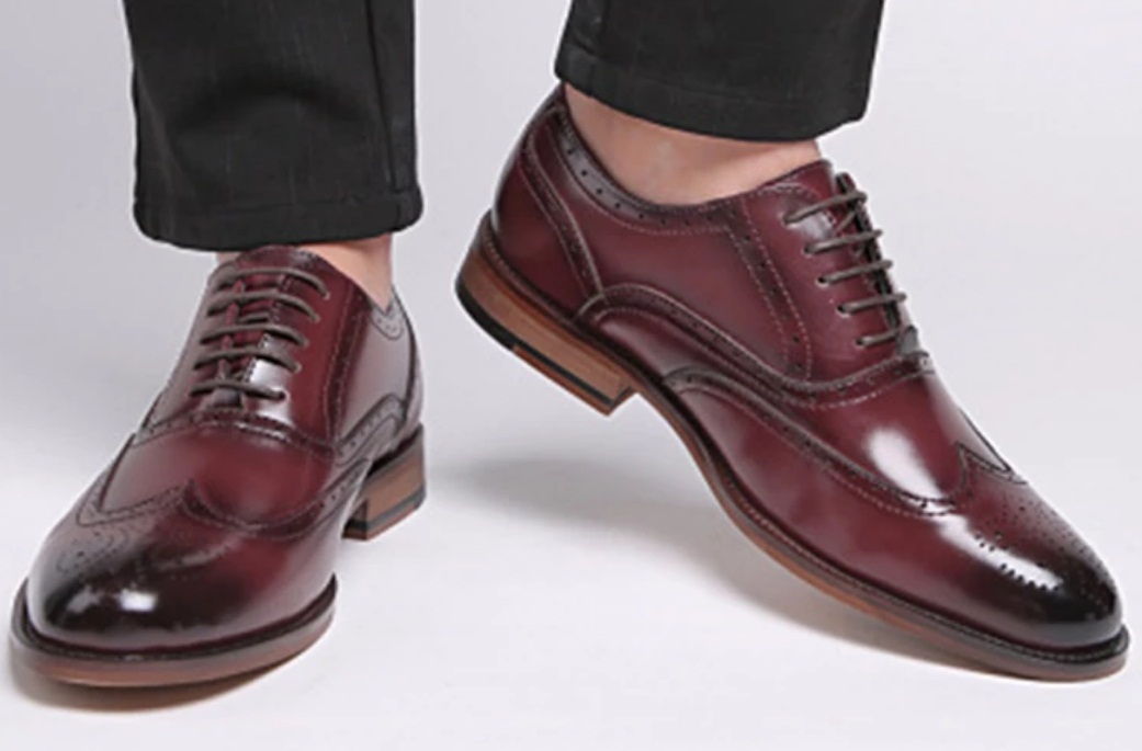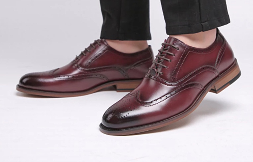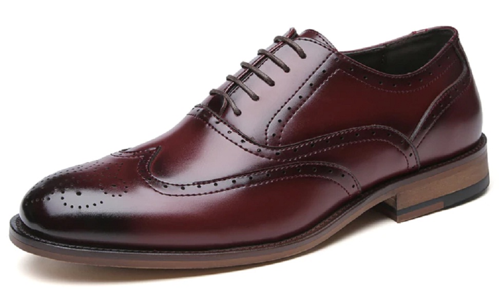 New Oxford Burgundy Handmade Full Brogue Real Leather Men Lace Up Formal Shoes