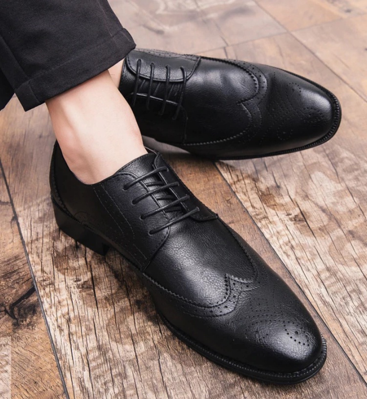 Customize Black Blucher Medallion Wingtip Pure Leather Lace Up Men Formal Shoes