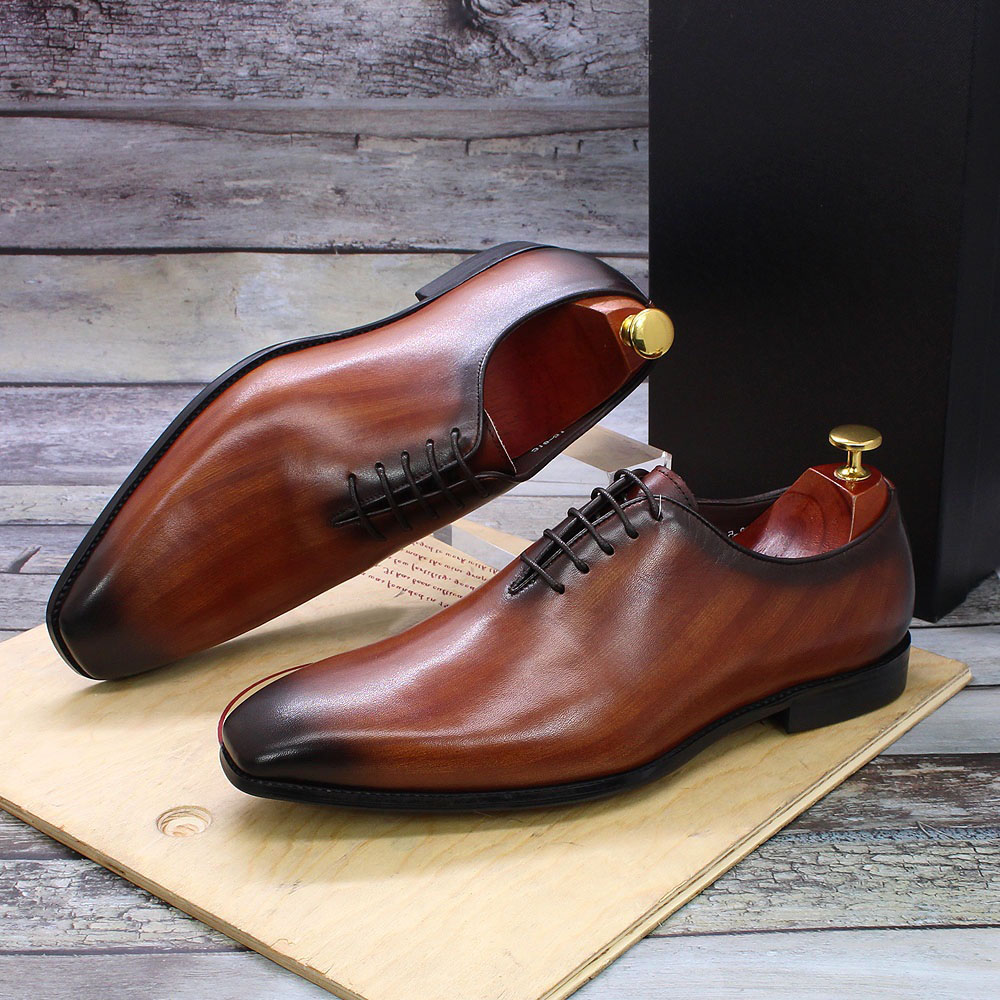 Men Oxford Wooden Brown Wholecut One Piece Real Leather Lace Up Formal Shoes