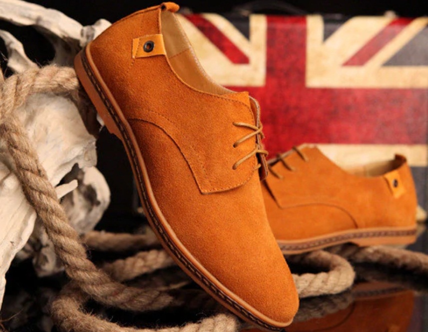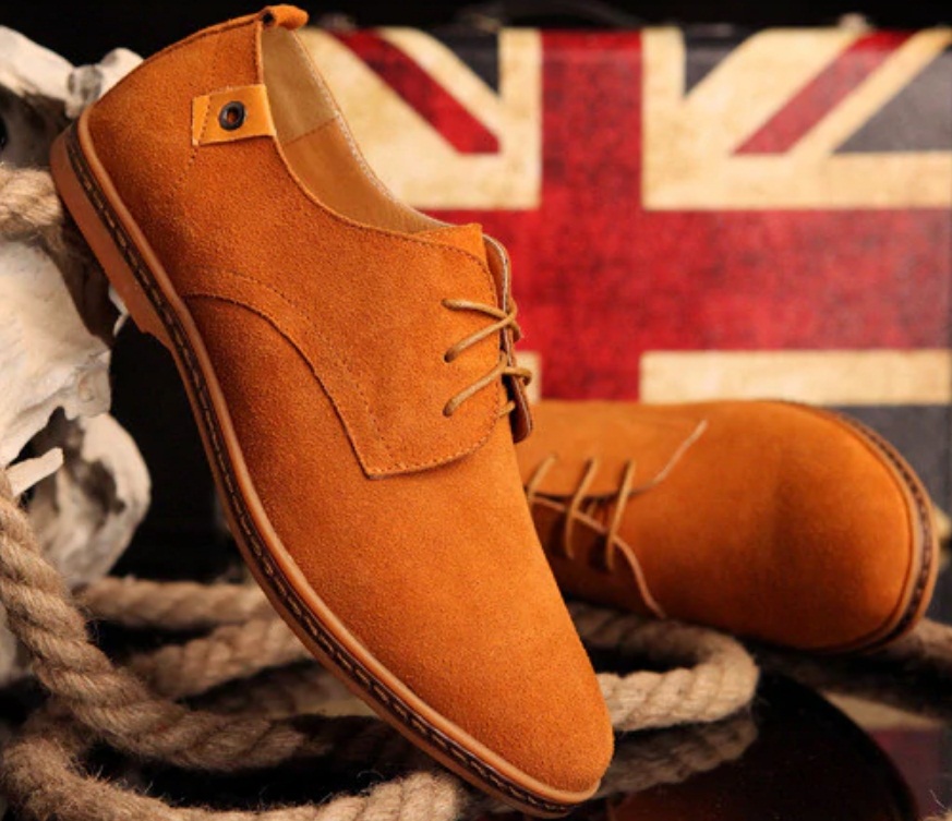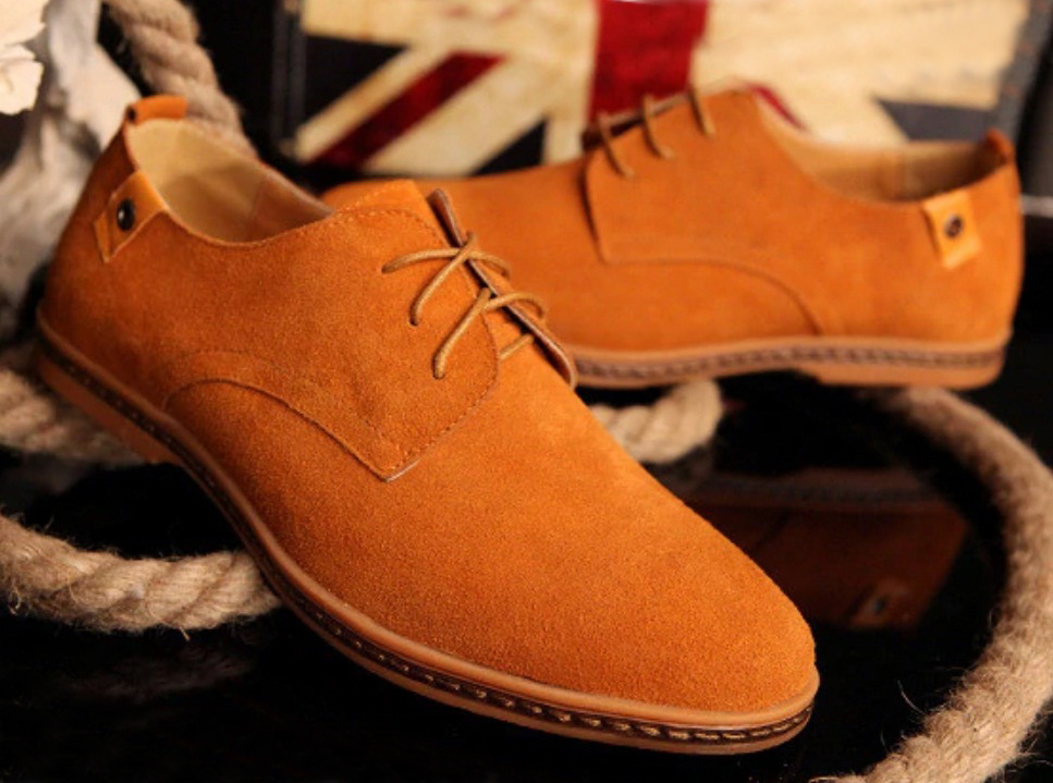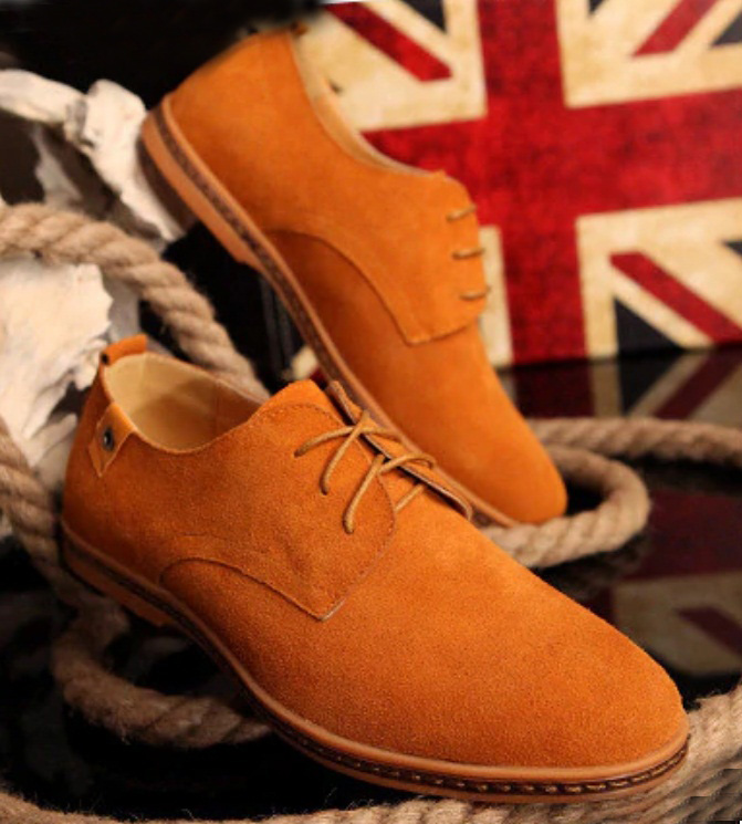 Men Orange Blucher Plain Vamp Lace Up Pure Suede Leather Handmade Casual Boots