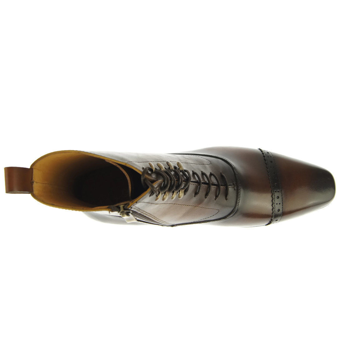 Customize Brown Cap Toe Men Handmade Leather Lace Up Zip Formal Long Ankle Boots