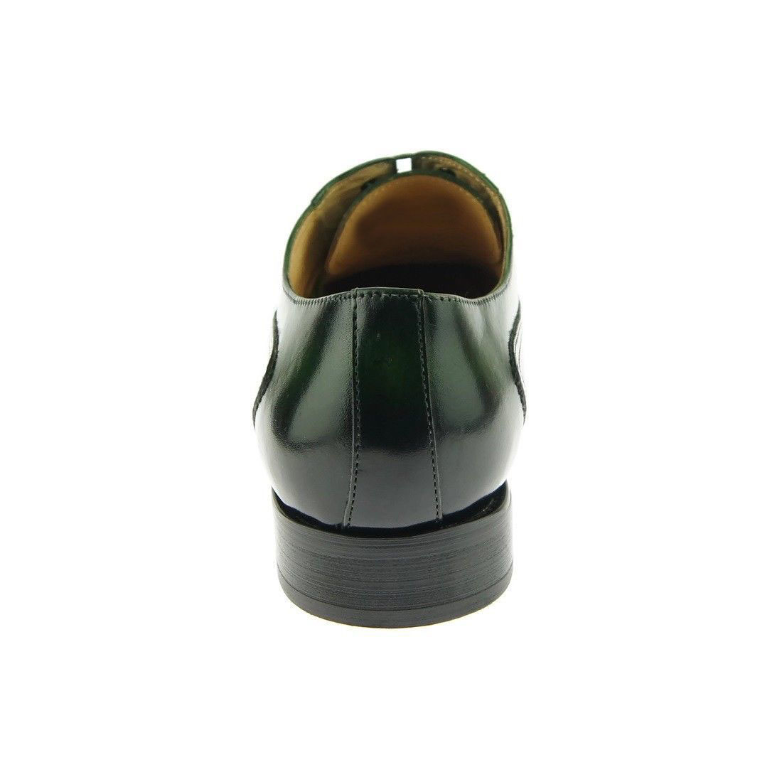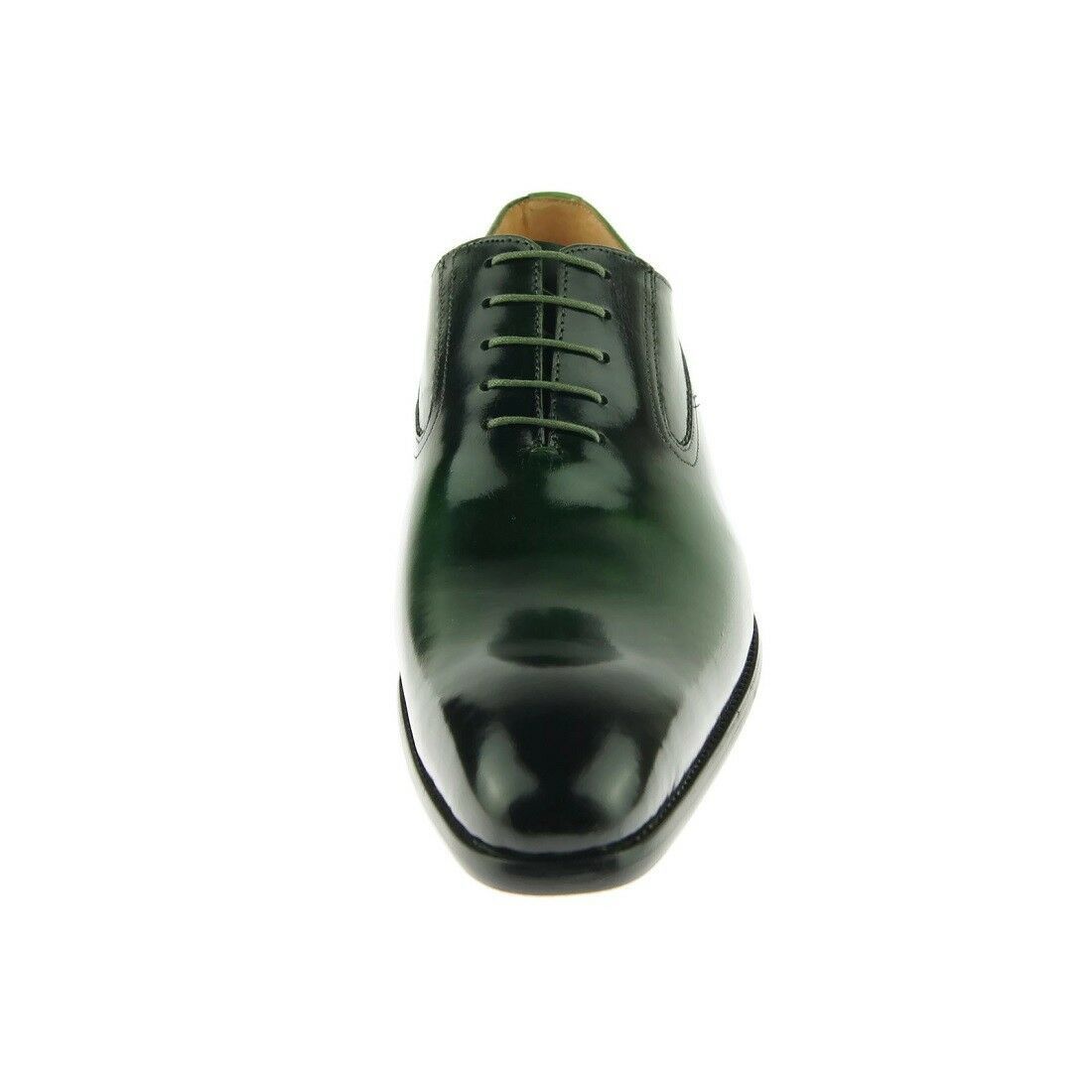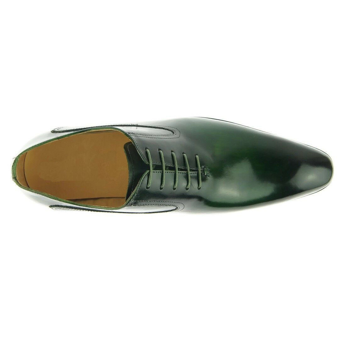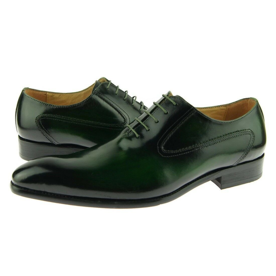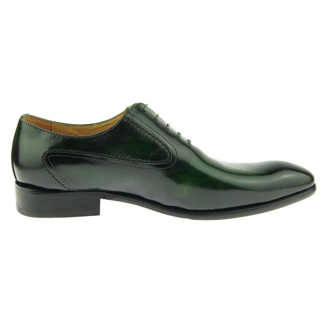 Men Green Patent Oxford Single Plain Vamp Lace Up Real Leather Handmade Sheos