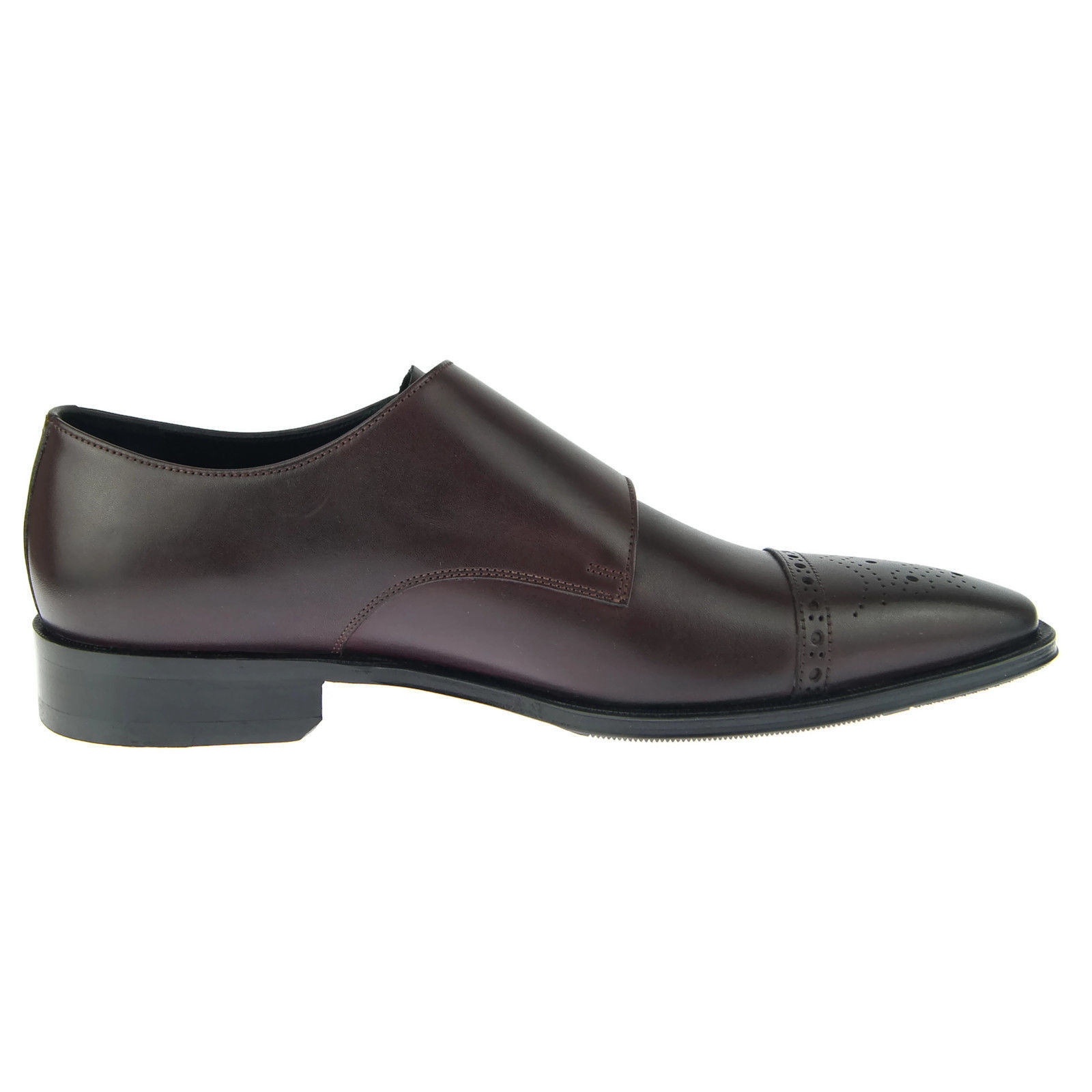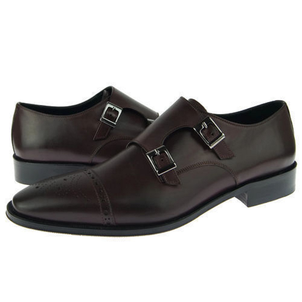 Monk Strap Semi Brogue Cap Toe Pure Leather Chocolate Brown Lace Up Formal Shoes