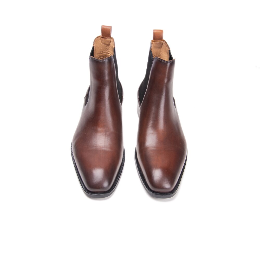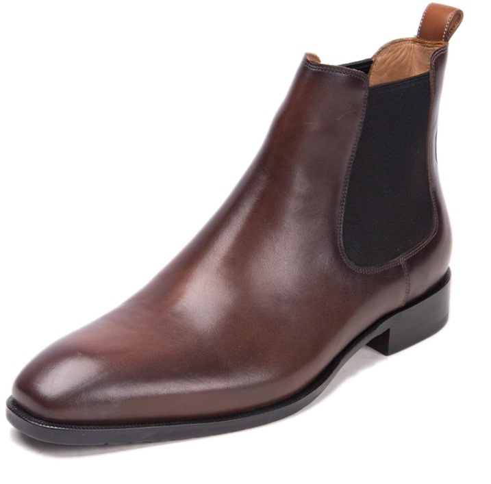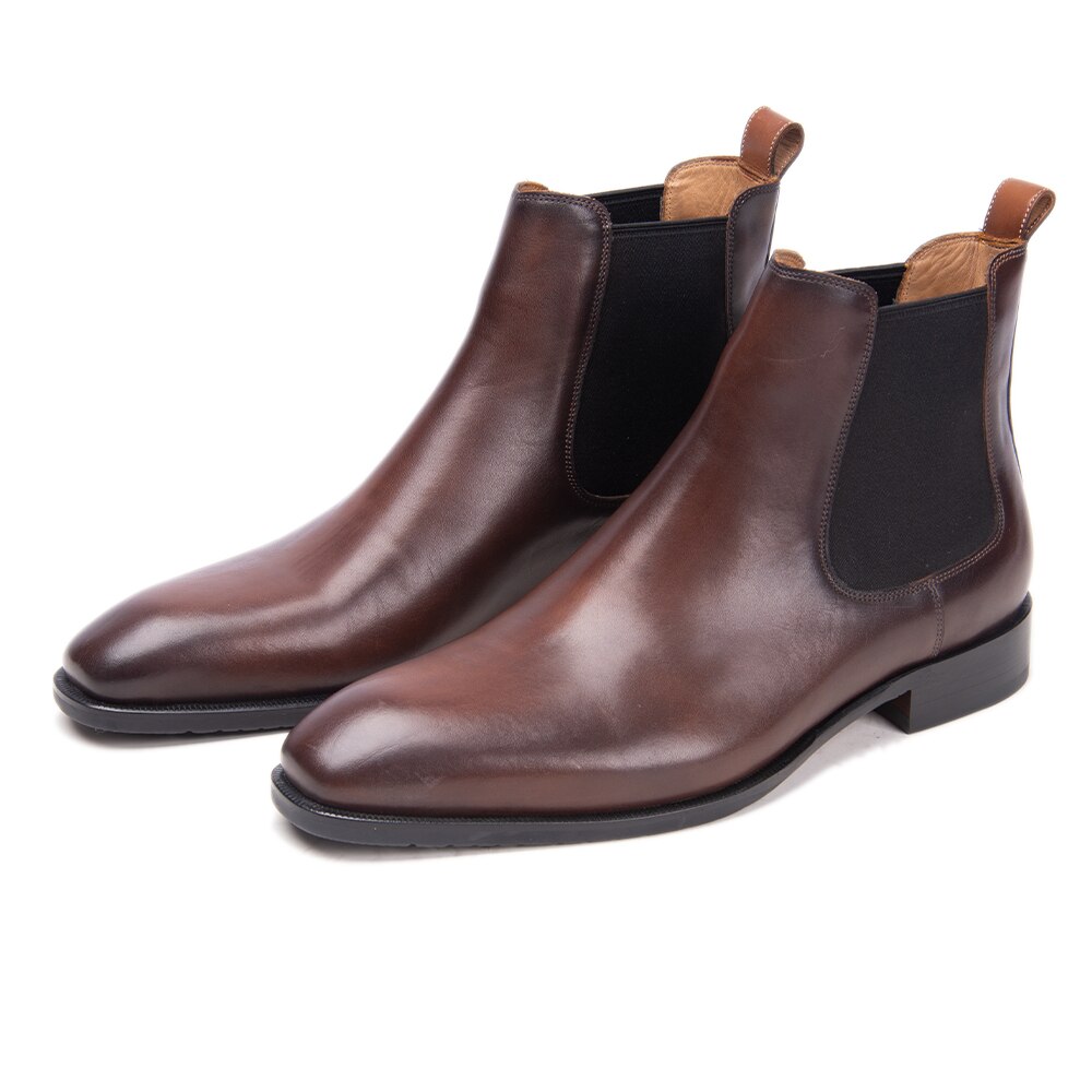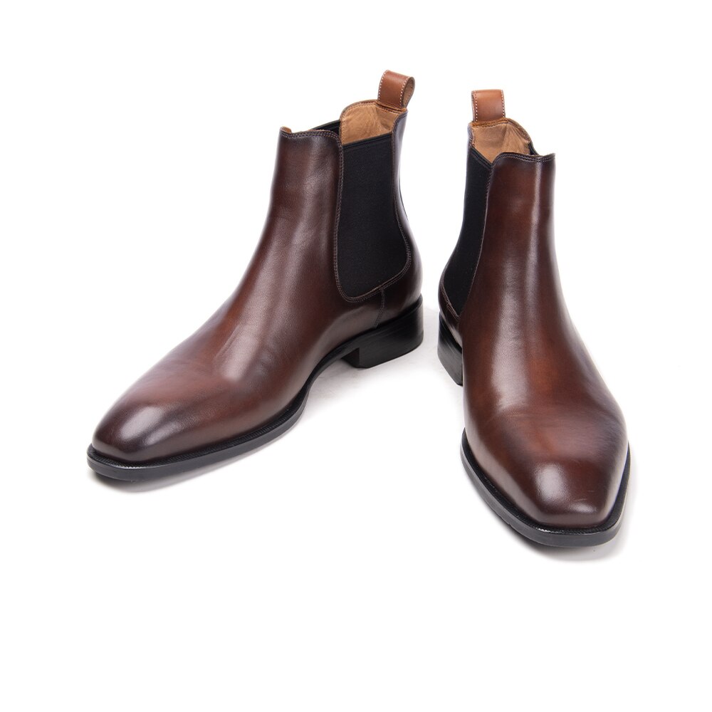 Stylish Chelsea Brown Elastic Panel Premium Leather Handmade Slip On Ankle Boots