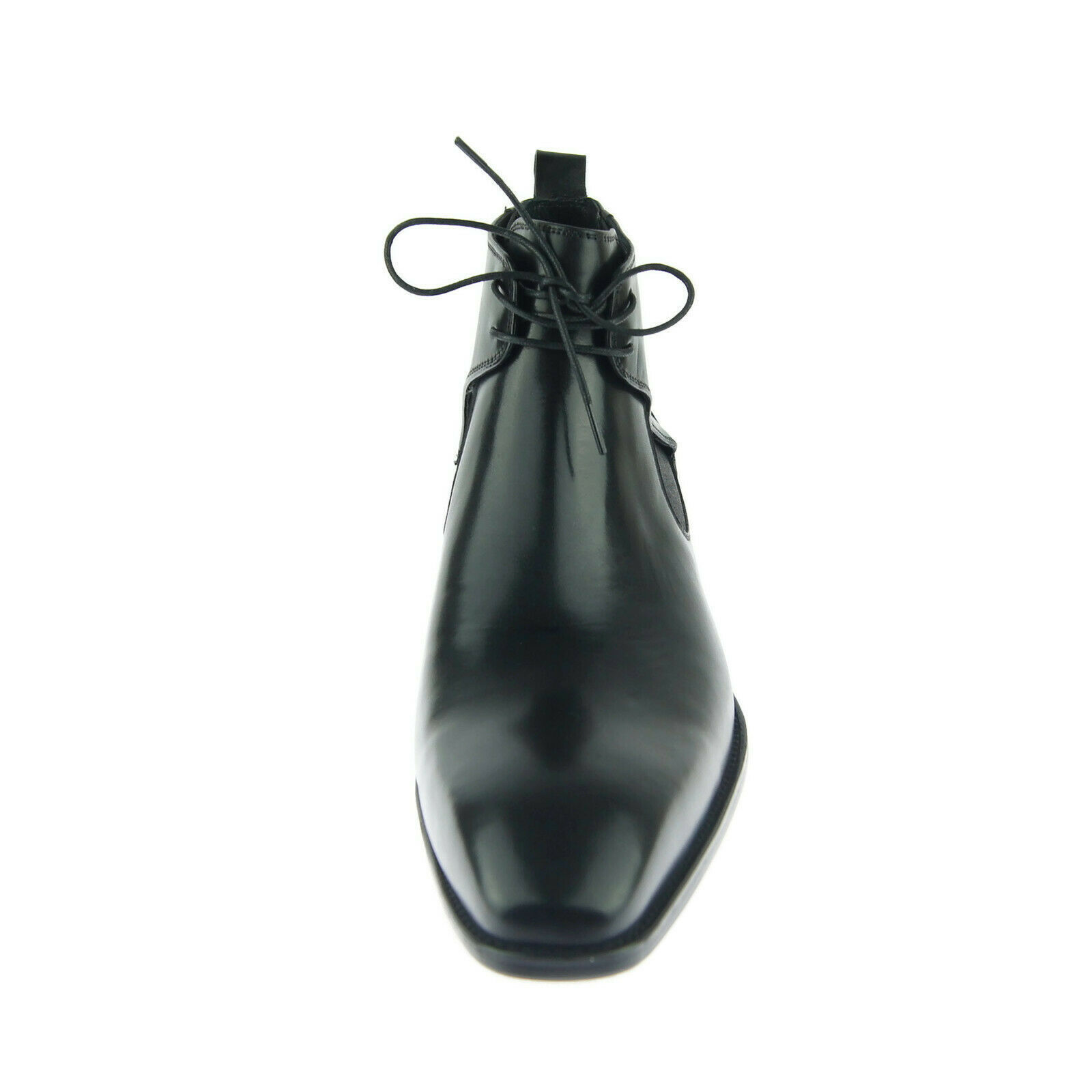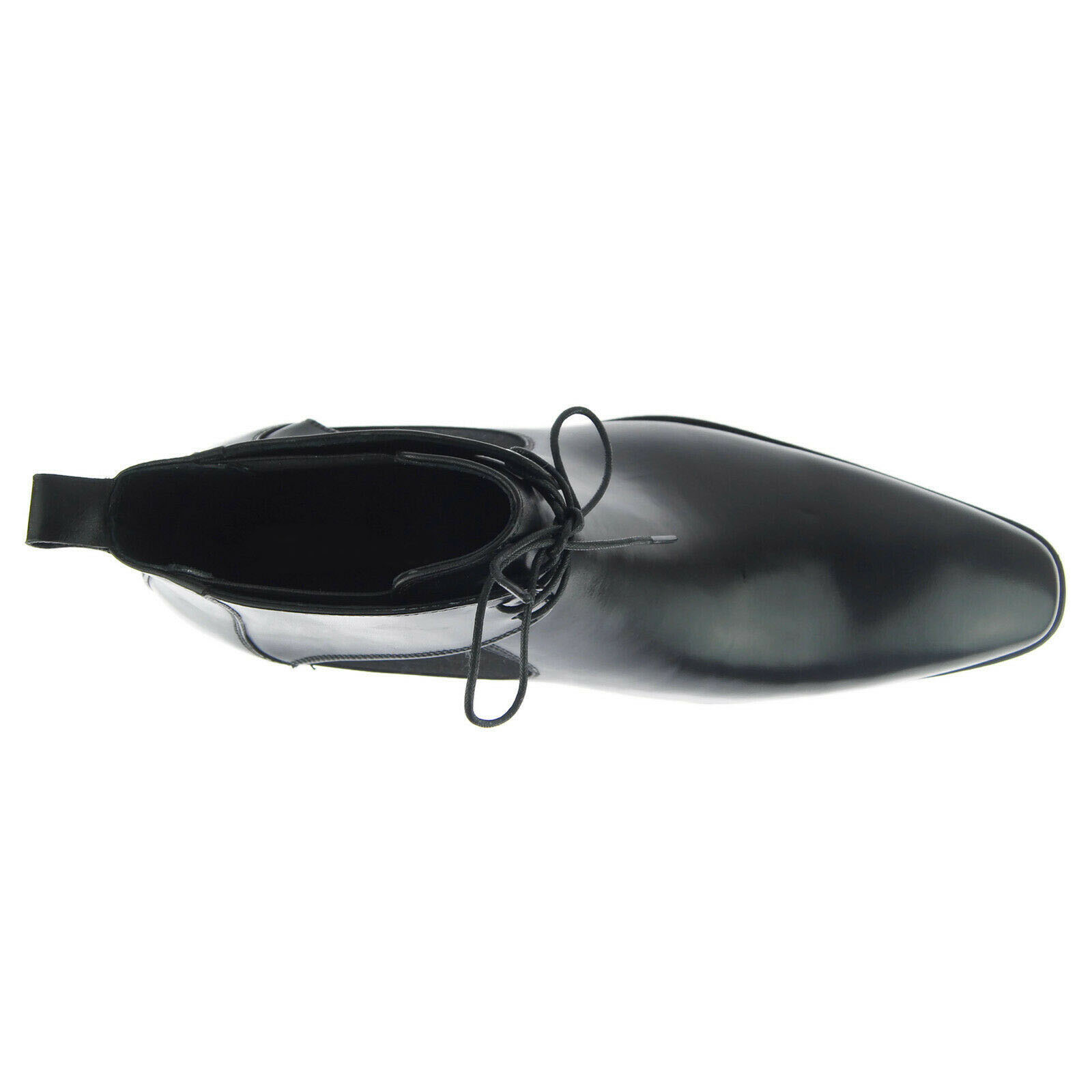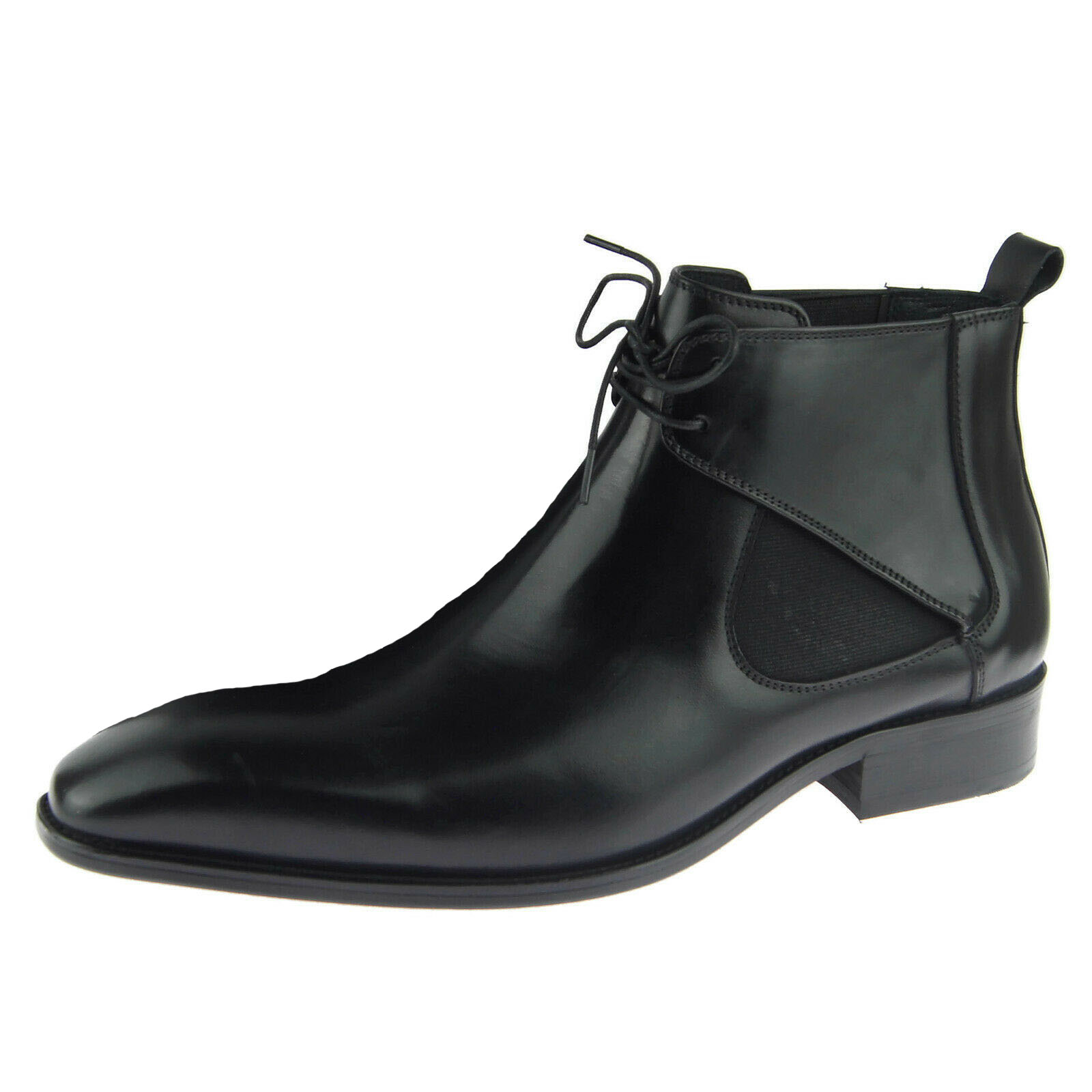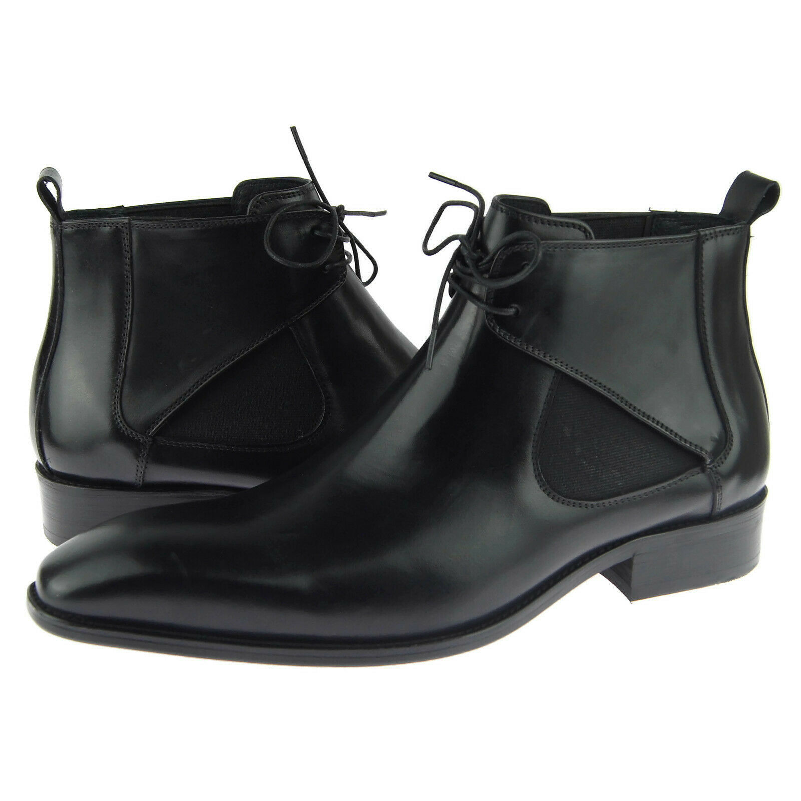 Black Lace Up Chelsea Elastic Panel Premium Leather Handmade Formal Ankel Boots