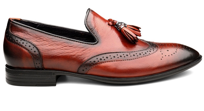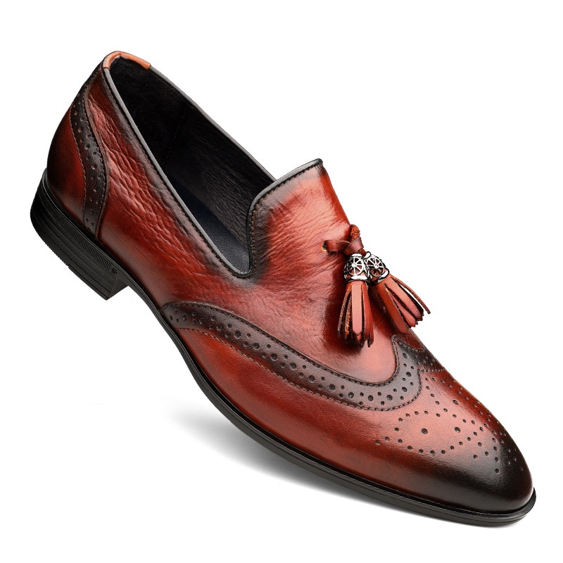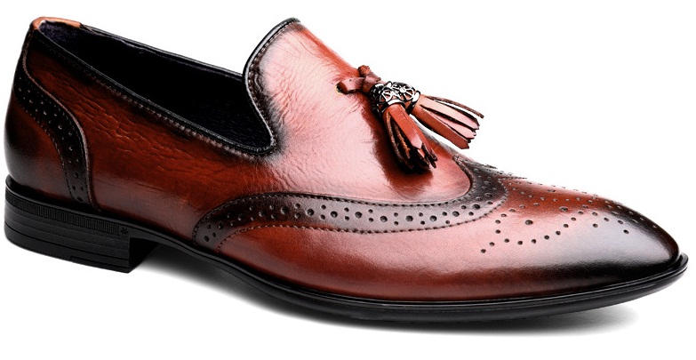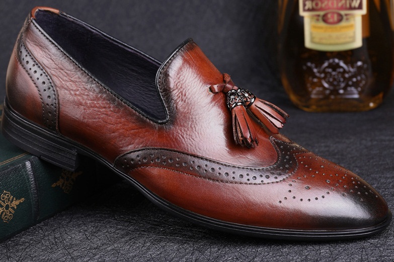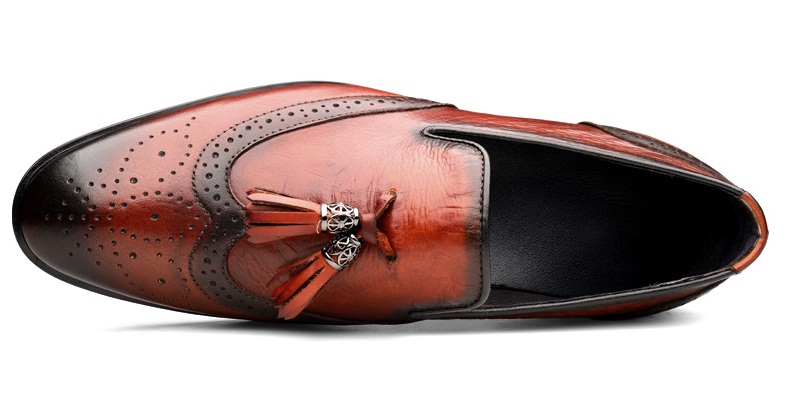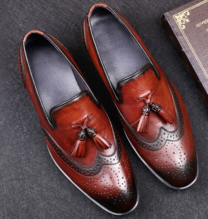 Stylish Patina Men Tassel Loafer Handmade Brogue Wingtip Leather Formal Shoes