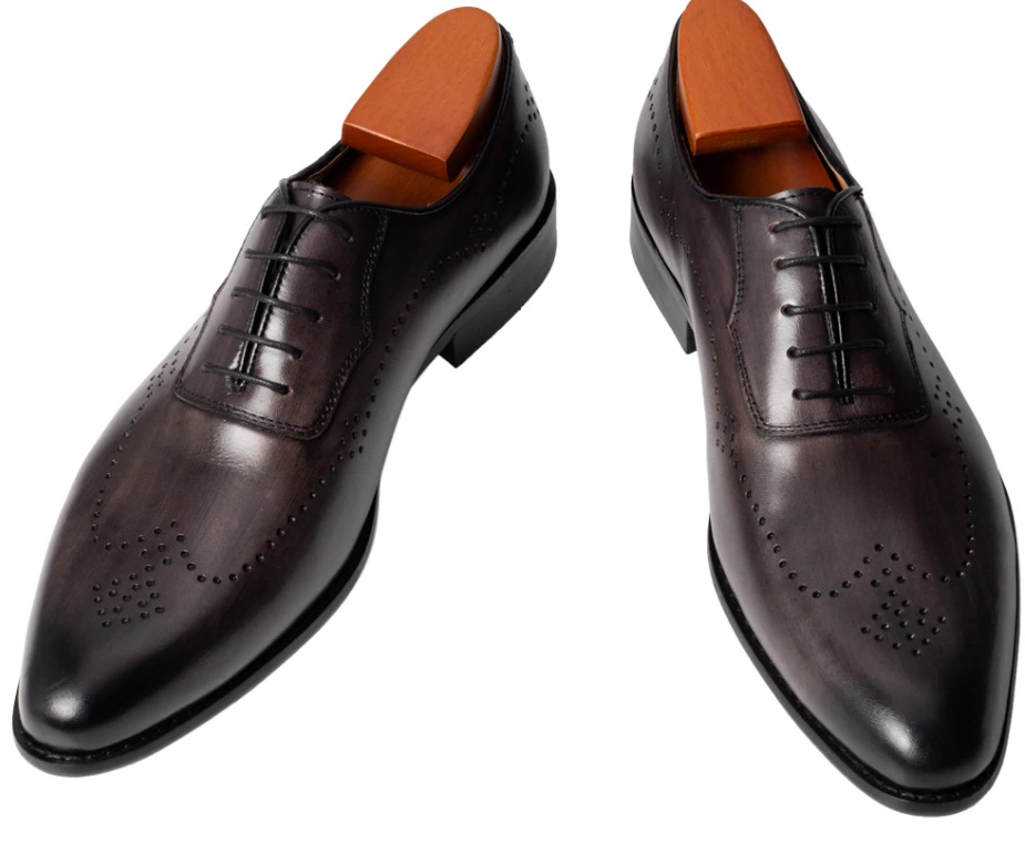 Customize Burnished Brown Patent Broue Wingtip Handmade Men Oxford Style Genuine Leather Made To Order Lace Up Closure Formal Dress Shoes US 7-16