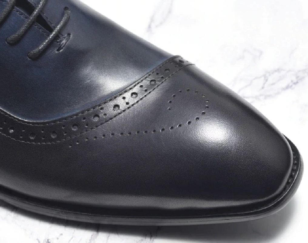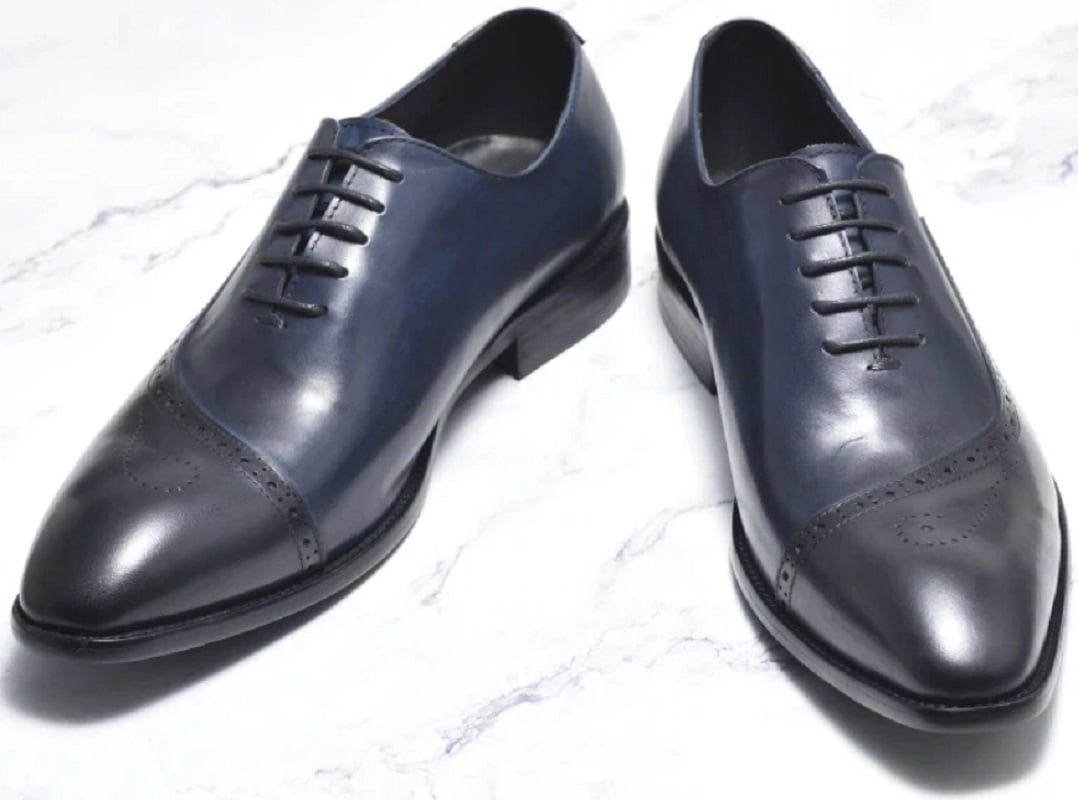 Customize Handmade Oxford Style Navy Blue Patina Brogue Toe Genuine Cow Hide Leather Made To Order Men Lace Up Fastening Formal Dress Business Shoes US7-16
