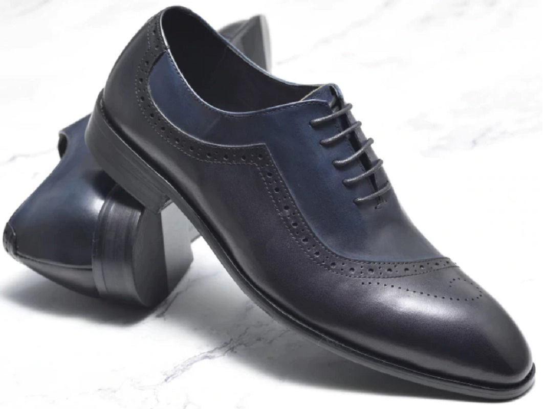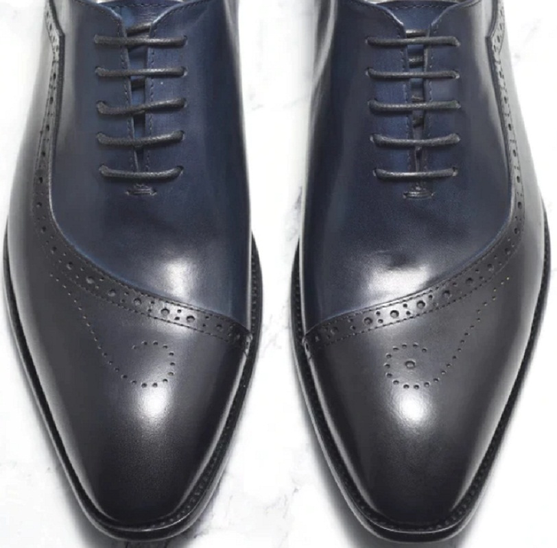 Handmade Oxford Navy Blue Patina Brogue Genuine Leather Men Lace Up Formal Shoes 7-16