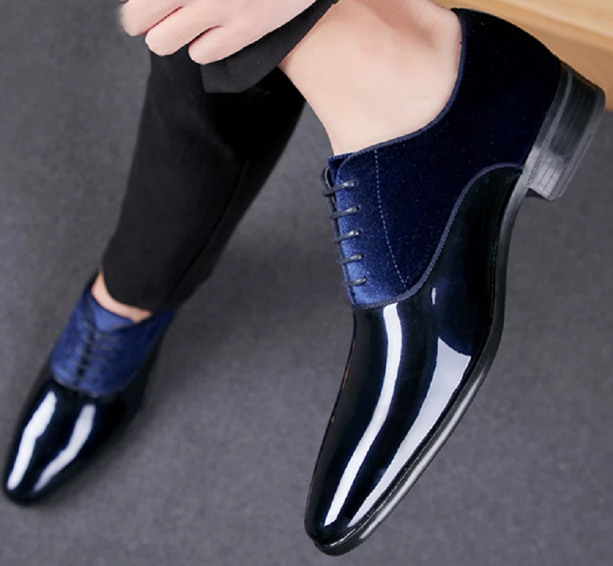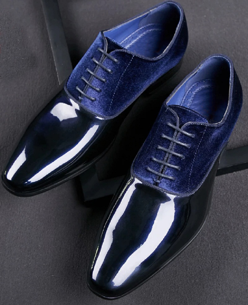 Men Oxford Blue Patent Genuine Suede Leather Handmade Lace Up Formal Shoes 7-16
