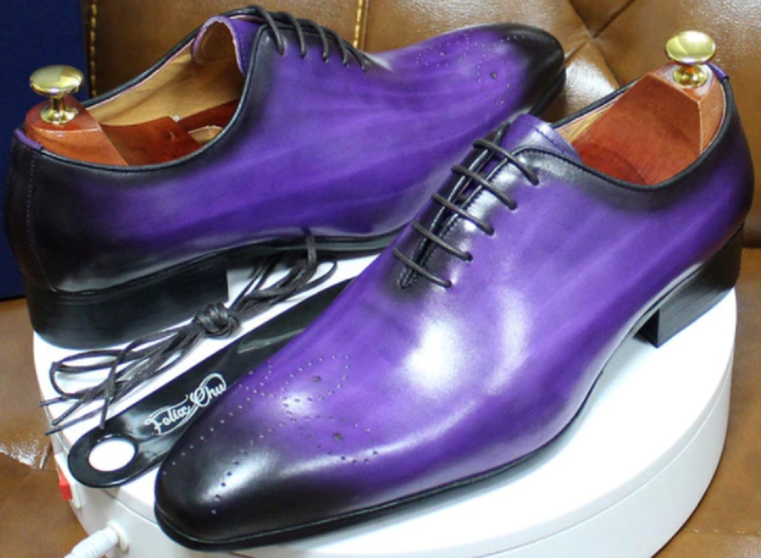 Made To Order Oxford Style Purple Patina Wholecut Brogue Toe Handmade Genuine Cow Hide Leather Customize Lace Up Formal Dress Business Shoes Size US 7-16