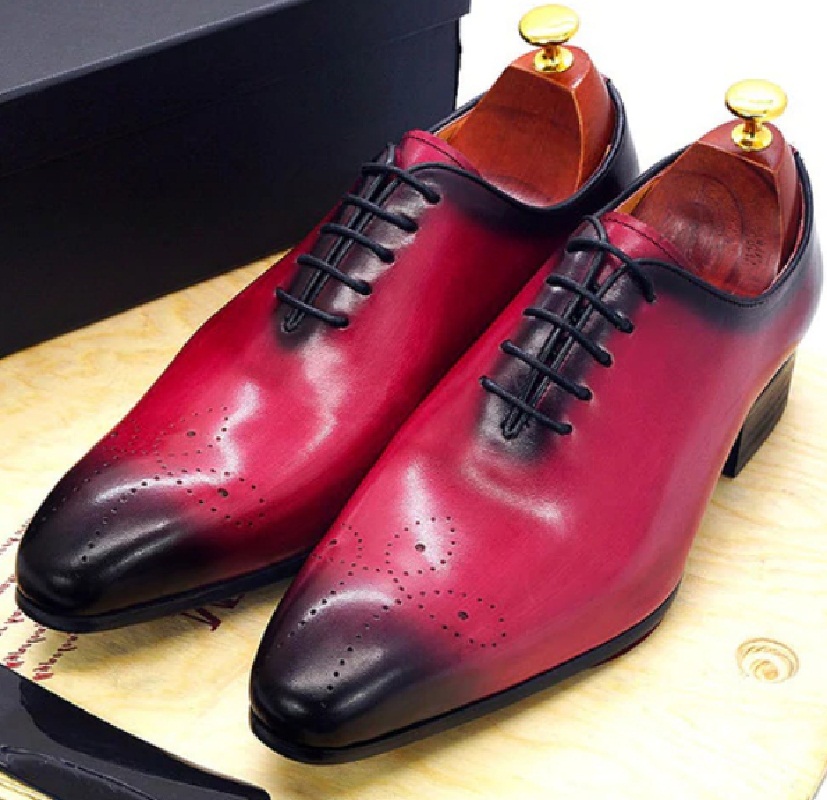 Customize Pink Patent Handmade Wholecut Brogue Patina Real Cow Hide Leather Made To Order Men Oxford Style Lace Up Closure Formal Dress Wedding Shoes Sizes US7-16