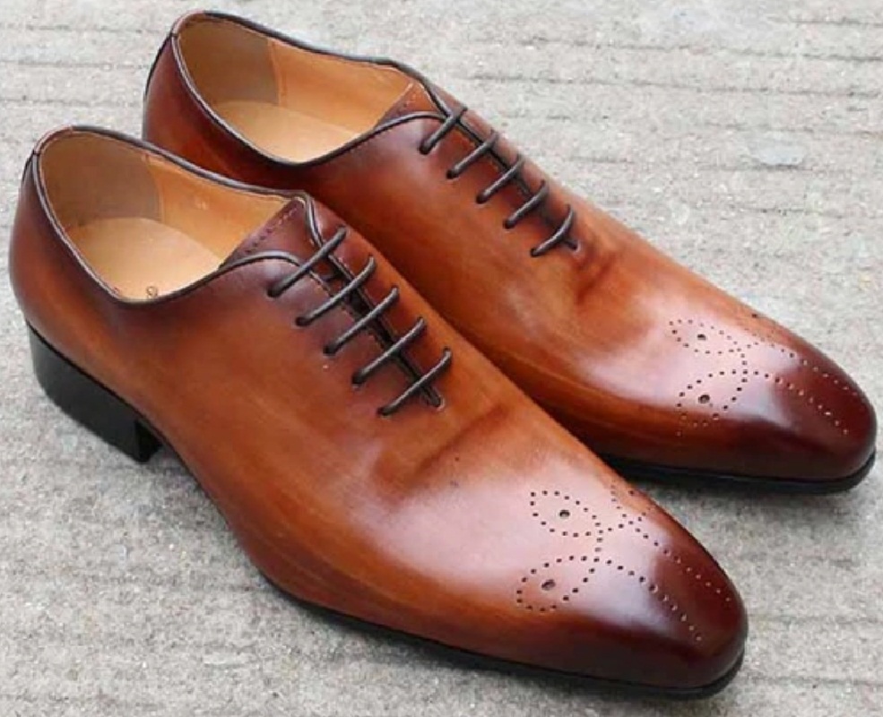 Brown Patina Brogue Toe Handmade Oxford Lace Up Leather Wholecut Formal Shoes