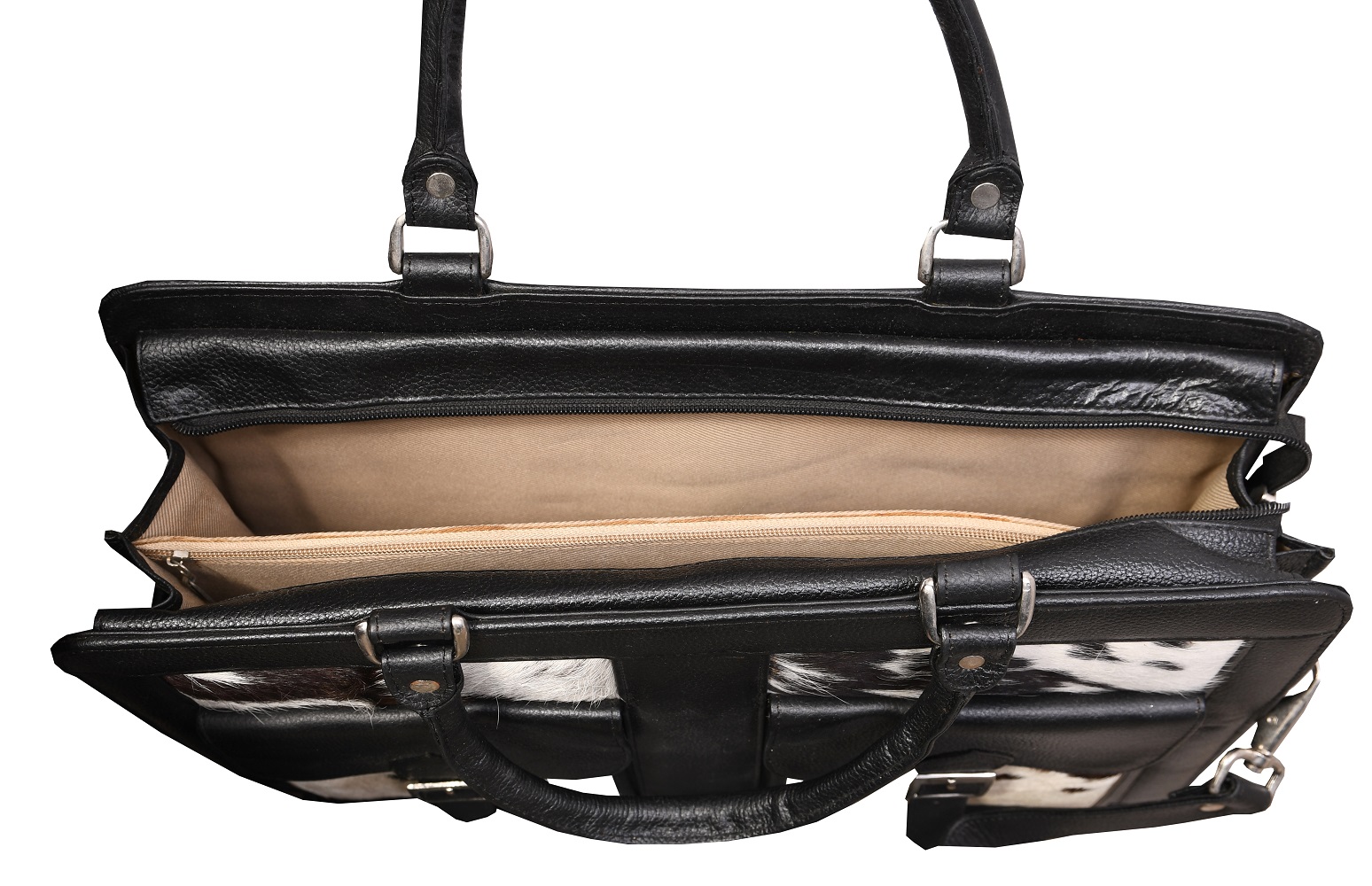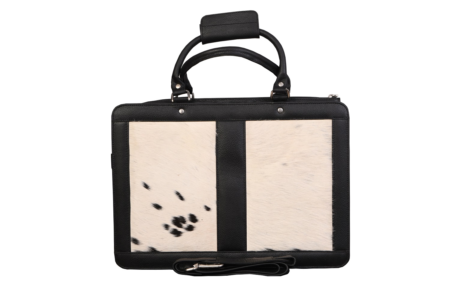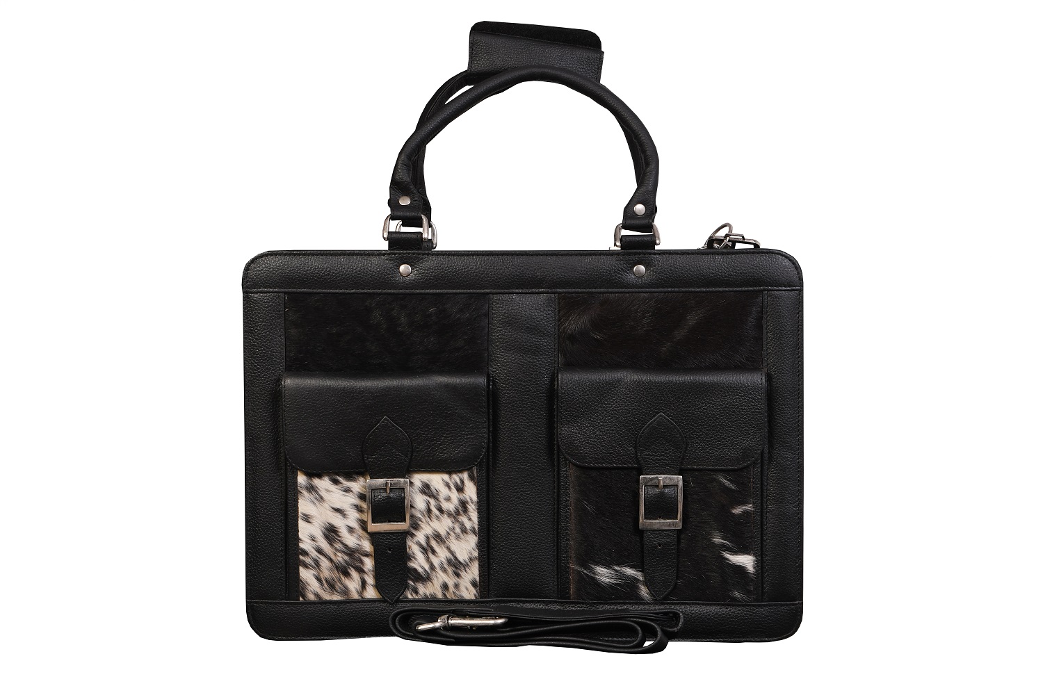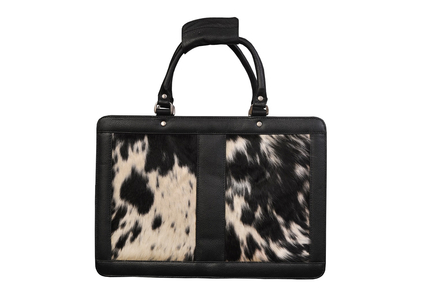 Handmade Messenger Cow Hair-On Brief Case, Travel Cowhide Leather Bag, Dual Buckle Pockets Cross Body Belted Laptop Bag,
