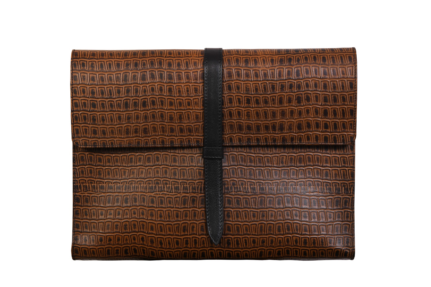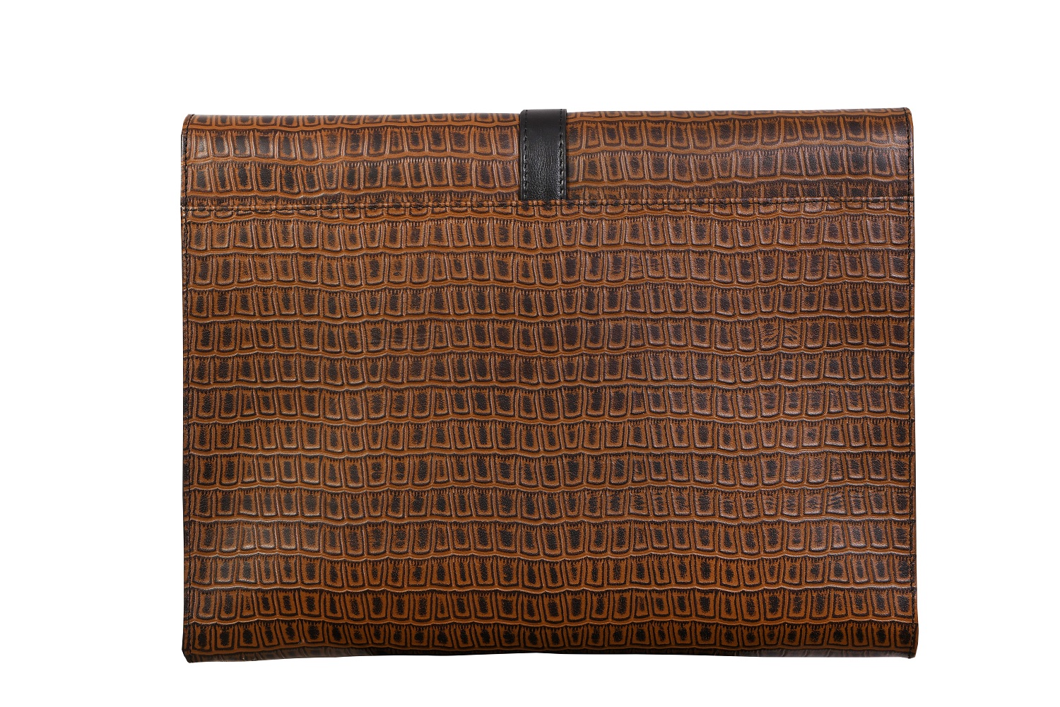 Distressed Brown Document Folder, Crocodile Print Leather Bag, Laptop Travel Bag, Cowhide Leather Executive Bag,