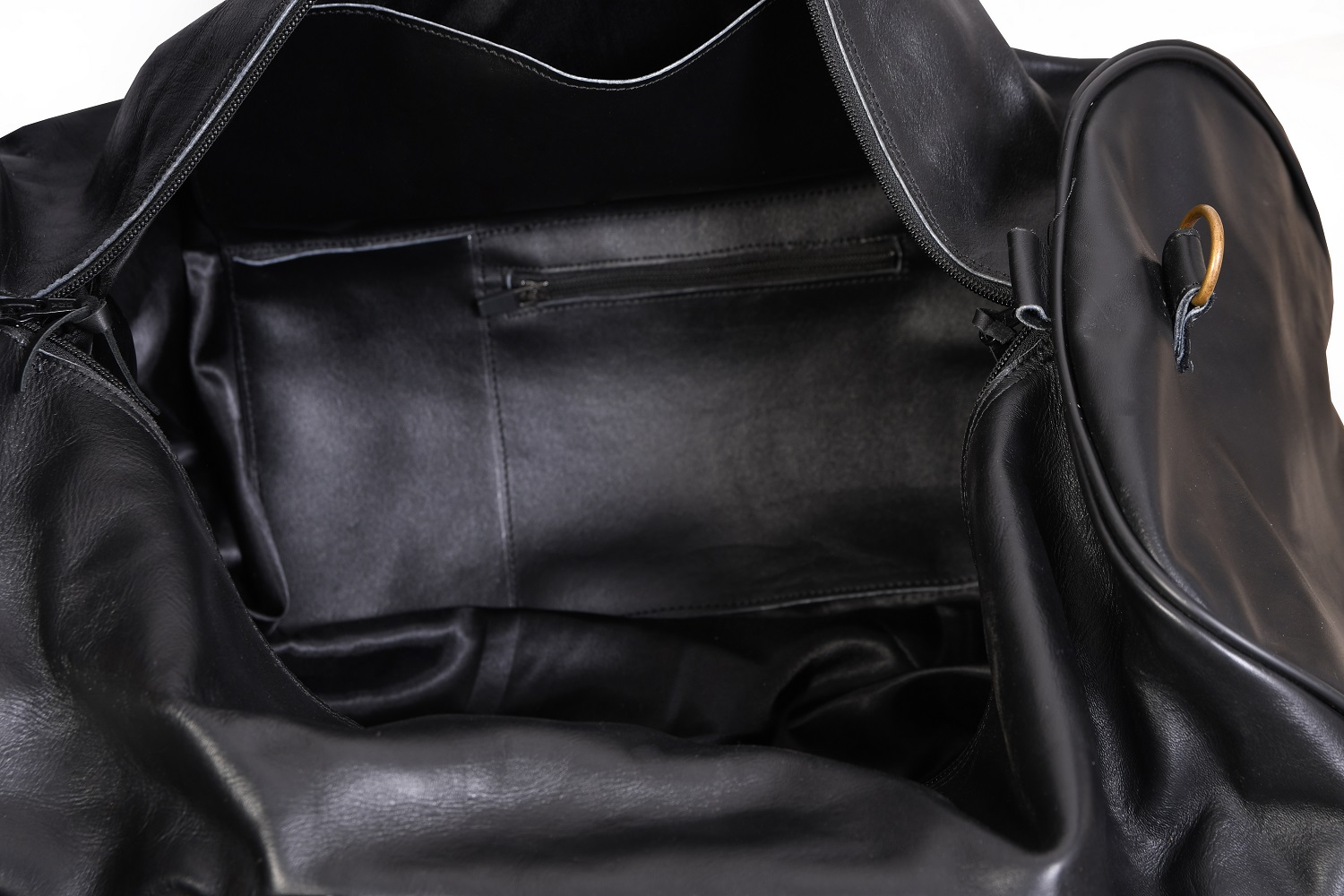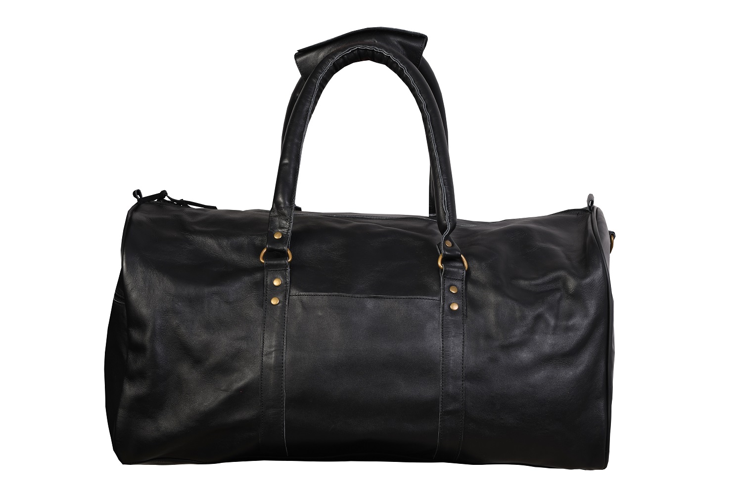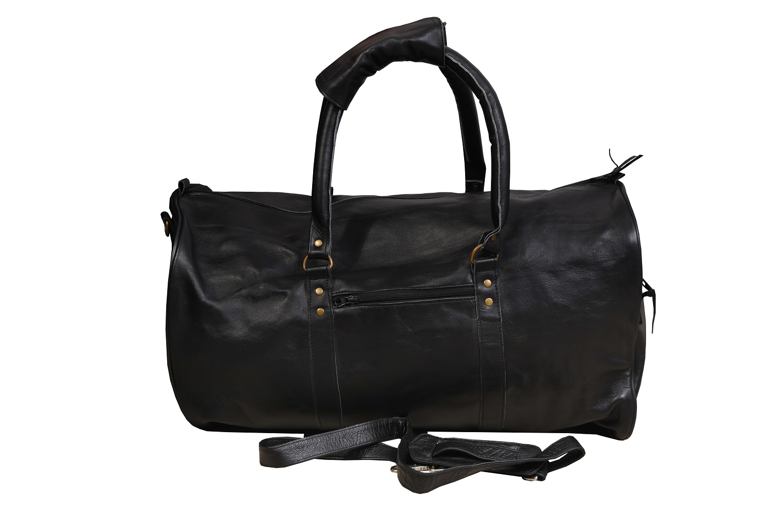 Weekender Black Luggage Bag, Premium Leather Sports Handle Bag, Zippered Belted Travel Bag,