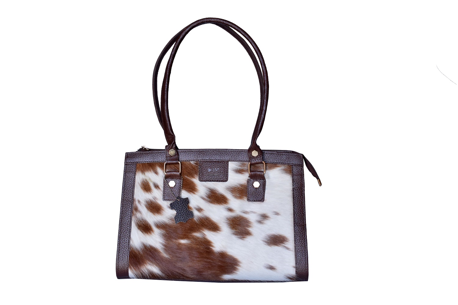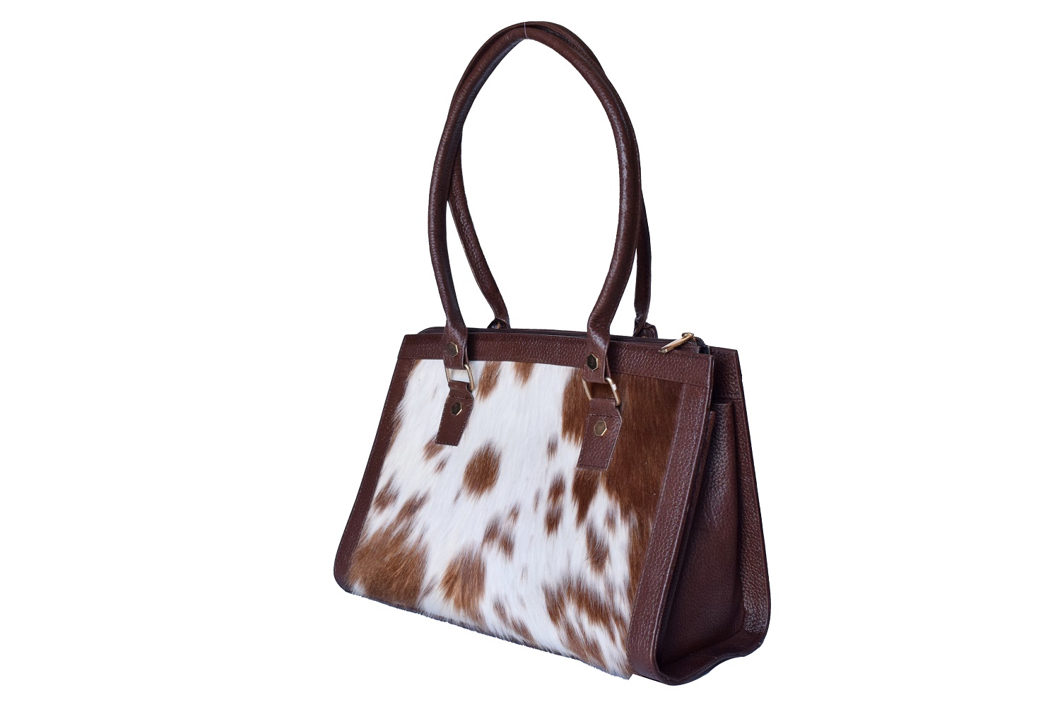 Ladies Handmade Purse, Cow Hair-On Leather Bag, Hand Carry Multi-Compartments Cowhide Leather Purse Bag