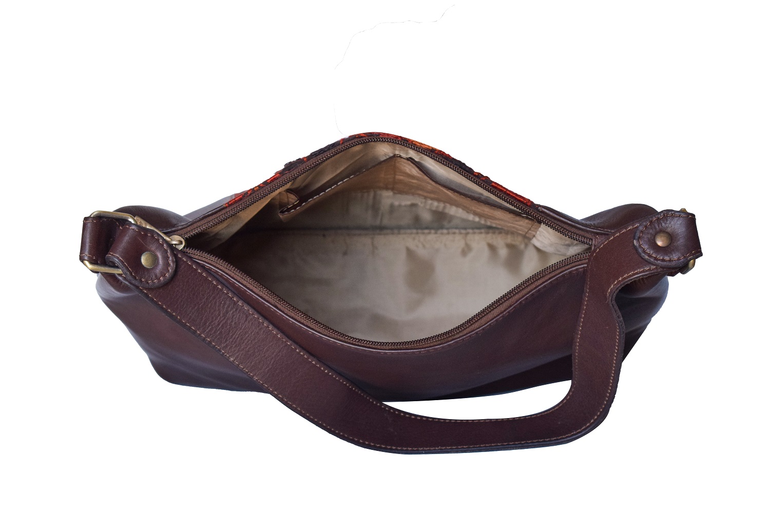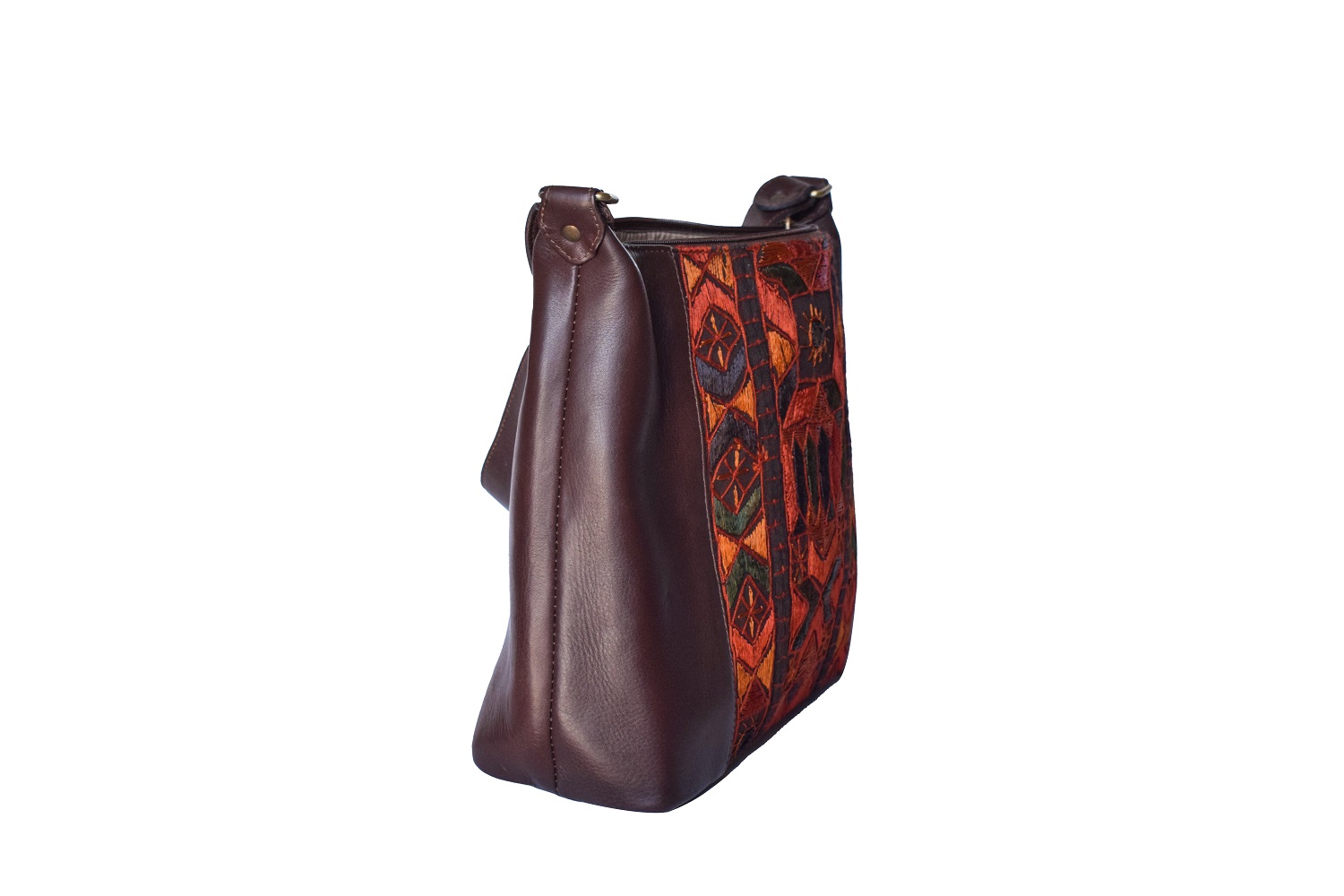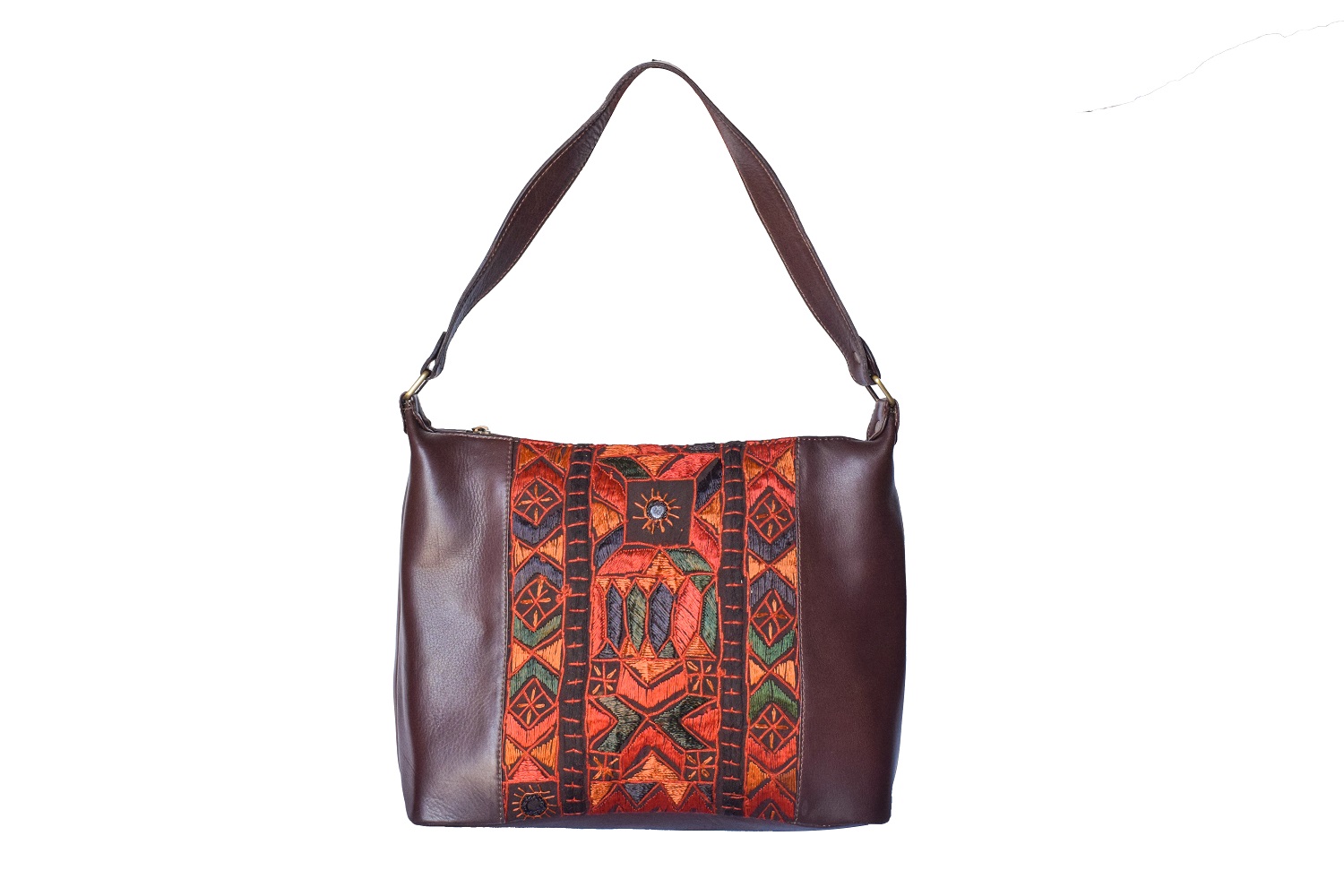 Handcrafted Women Shoulder Purse, Cowhide Leather Hand Bag, Ladies Kutch Embroidery Hand Bag Purse