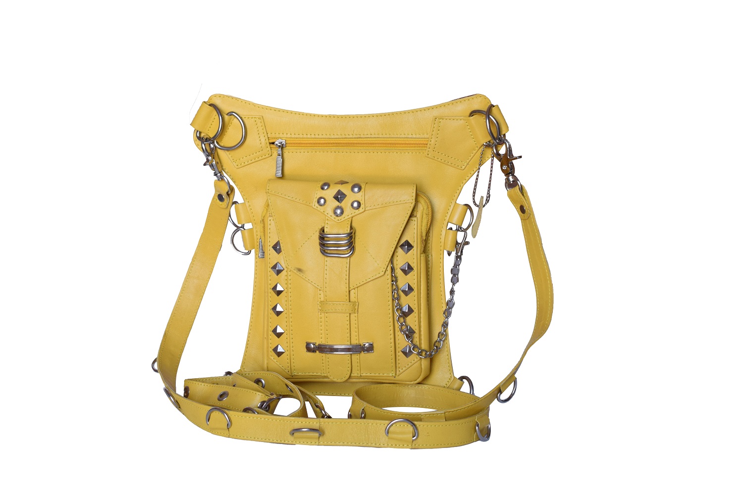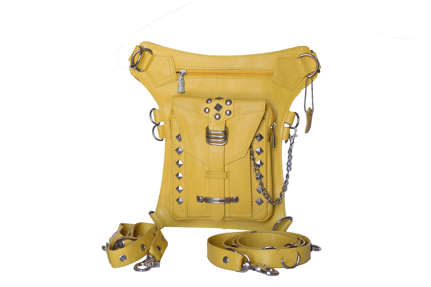Handmade Pyramid Studs Backpack, Leather Holster Bag, Yellow Hip Bag, Travel Bag