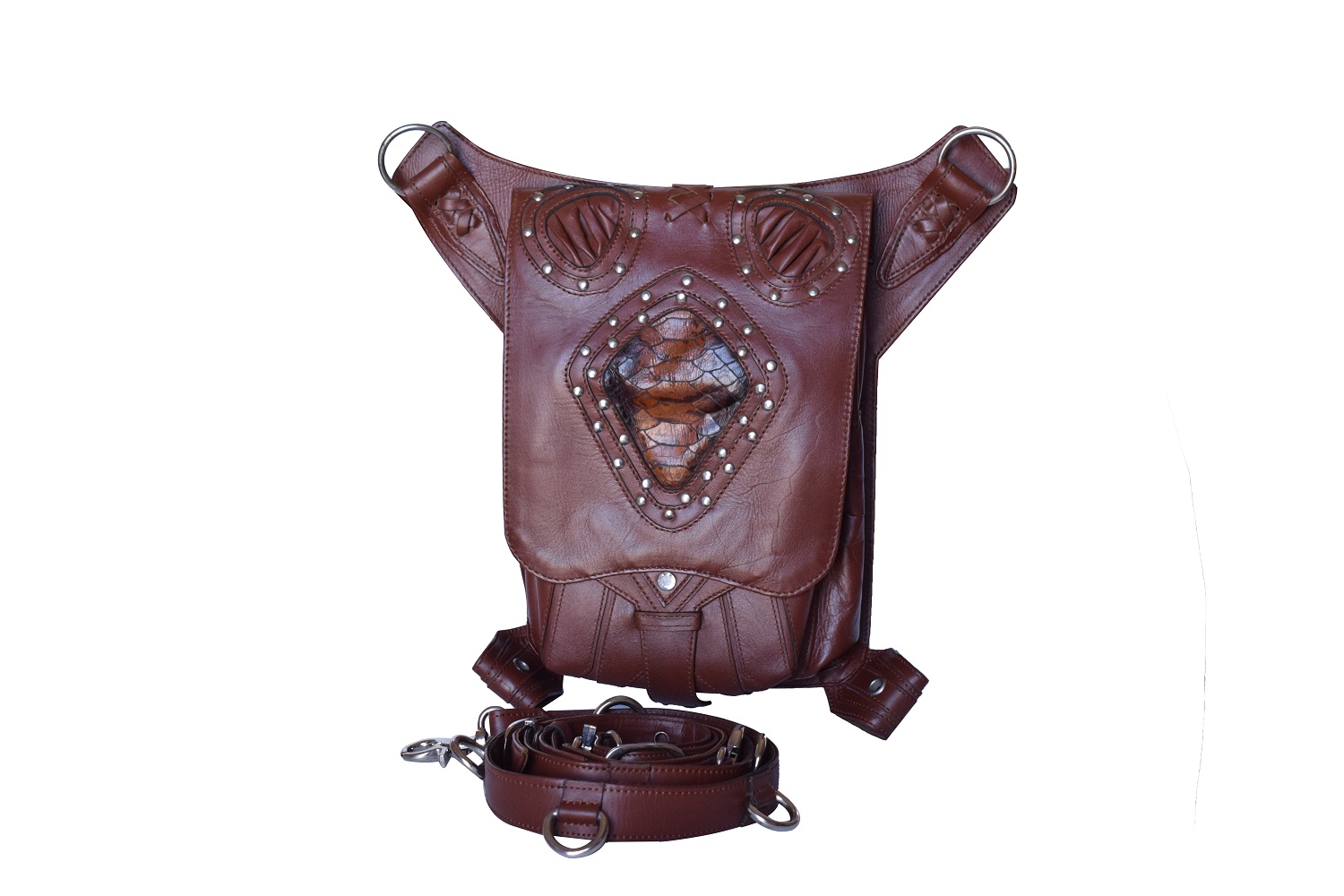 Brown Studs Backpack, Holster Leather Bag, Hip Bag, Waist Bag, Unisex Travel Bag