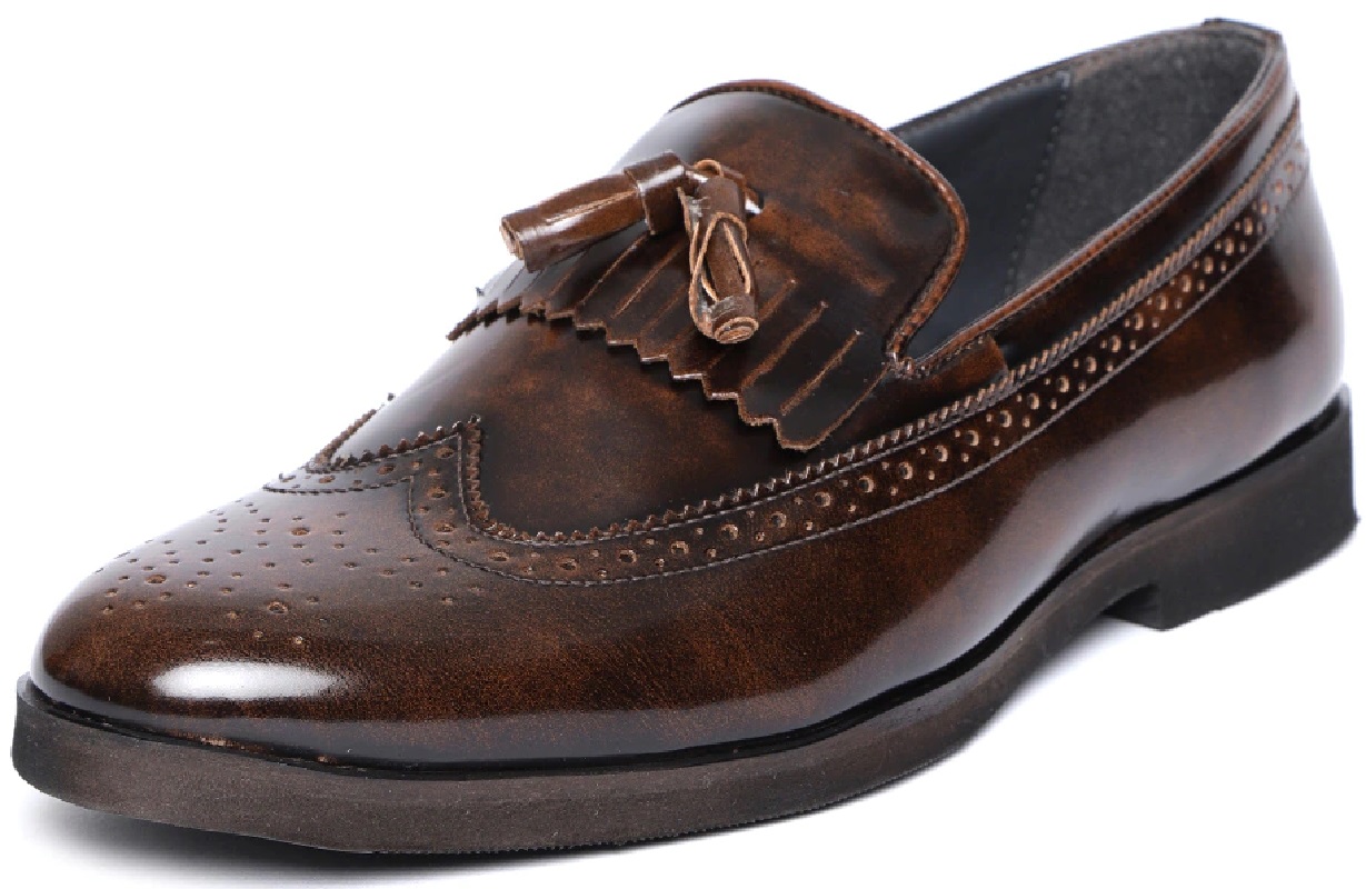 Made To Order Fringes Tassels Shoes, Patent Leather Brogue Slip On Loafer Shoes,