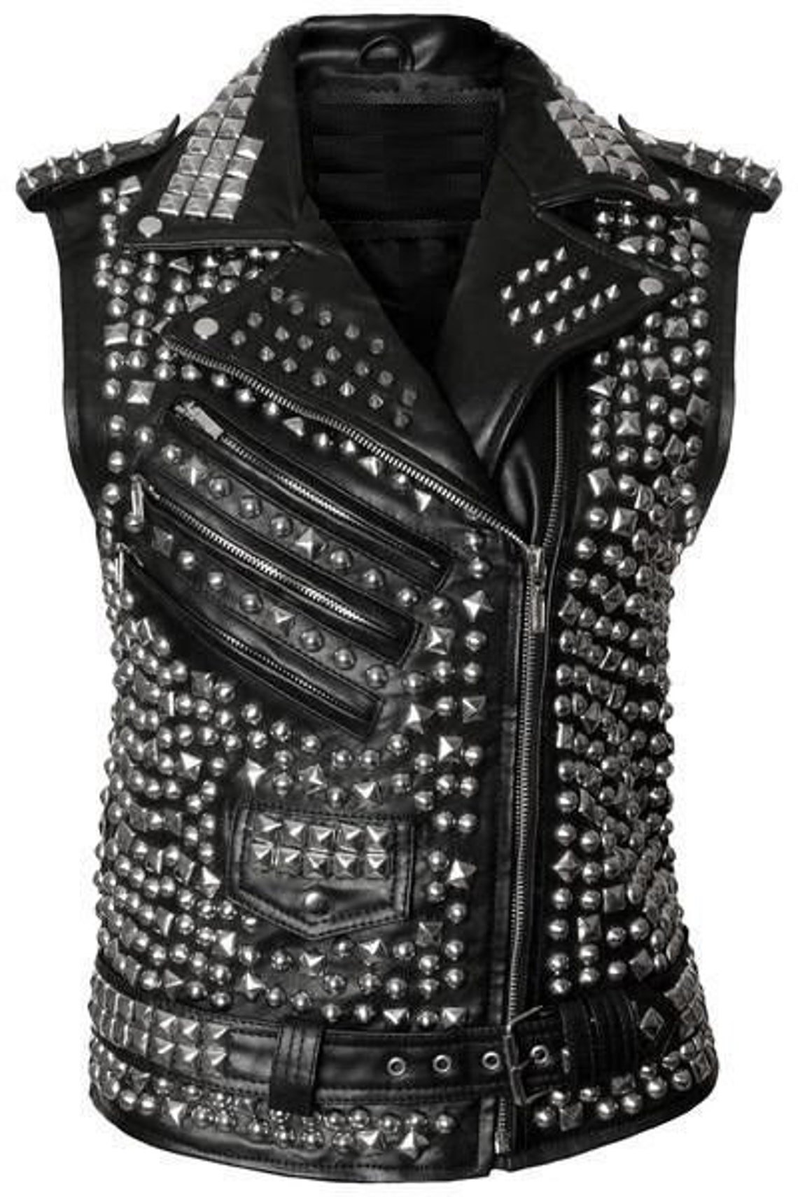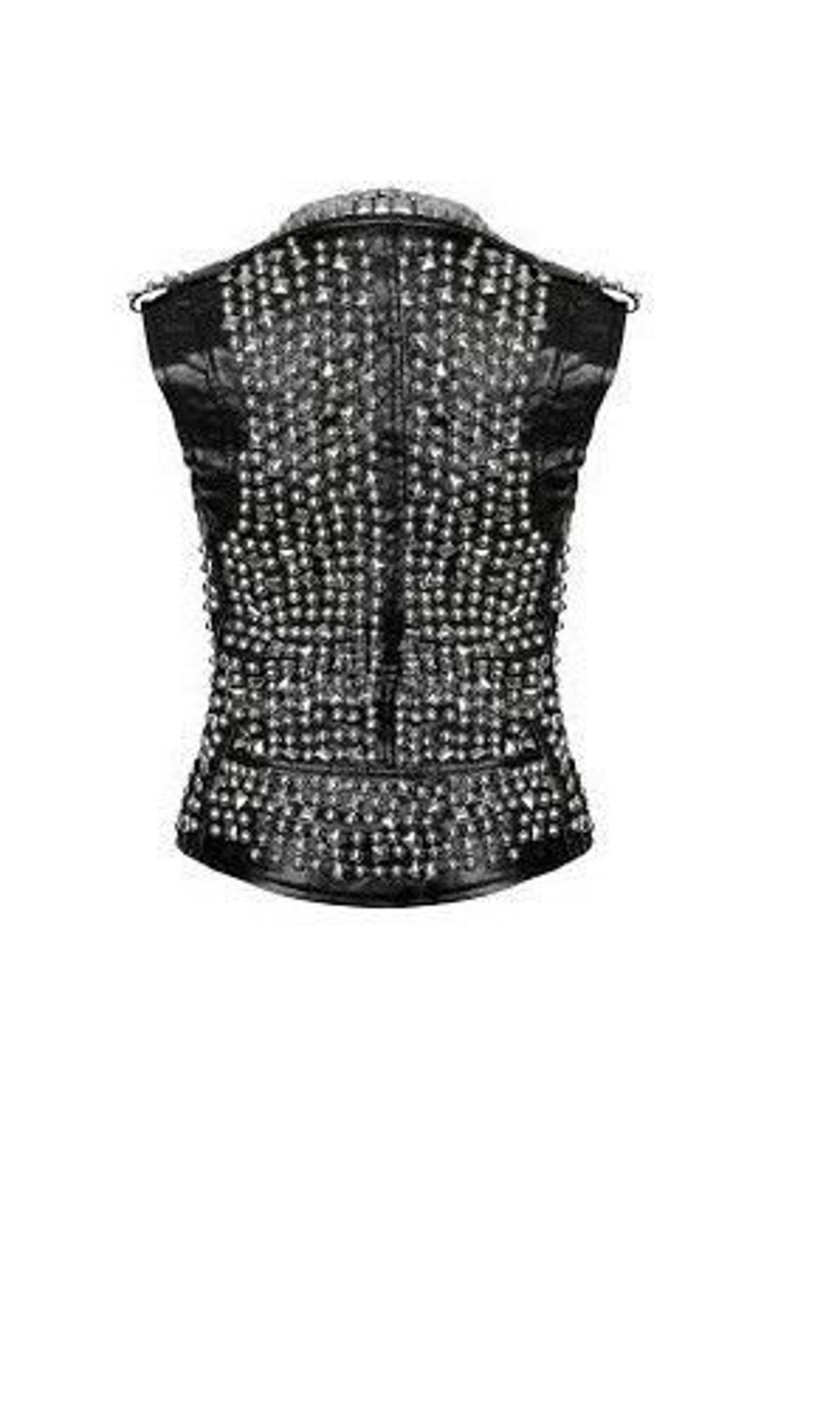 Handmade Woman Studded Leather Vest, Ladies Leather Studded Vest, Black Spike Belted Studs Zipper Brando Leather Vest Pocket Personalized Vest jacket,