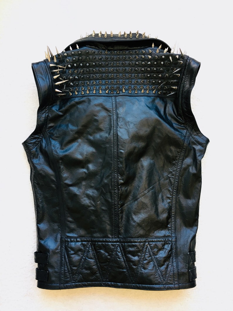 Vest Jacket Handmade Men's Punk Silver Long Spiked Studded Leather Vest, Buttons Up Vest Jacket, Silver Studs And Spikes Cow Skin Leather Jacket,