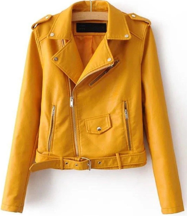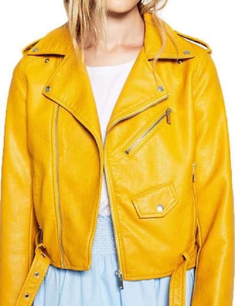 Hand Stitched Yellow Brando Zipper Pure Leather Women's Bikers Customize Fashion Jacket,