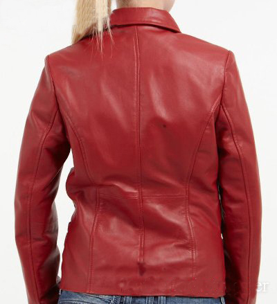 Red Color Cow Skin Leather Coat, Women's Fashion With Front Hand Pockets And Zippered Closure, Spread Collar Handmade Outer Wear Fashion Jacket,