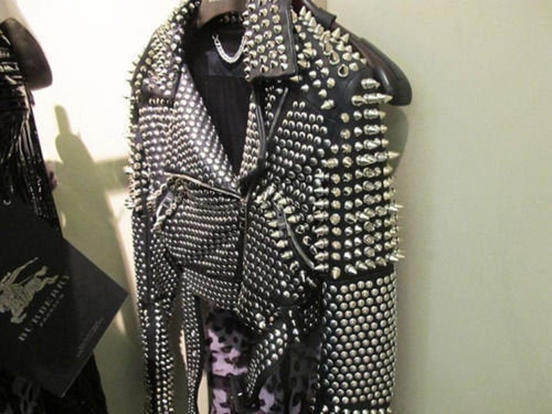 Women Steam Punk Heavy Metal Punk Jacket, Black Premium Leather Gothic Waist Belted Jacket, Spiked Silver Studs Motorbike Fashion Jacket,