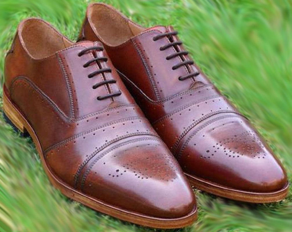 Balmoral Dress Shoes, Semi Brogue Rubber Sole, Pure Leather Laces Formal Shoes,