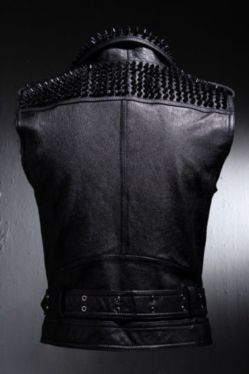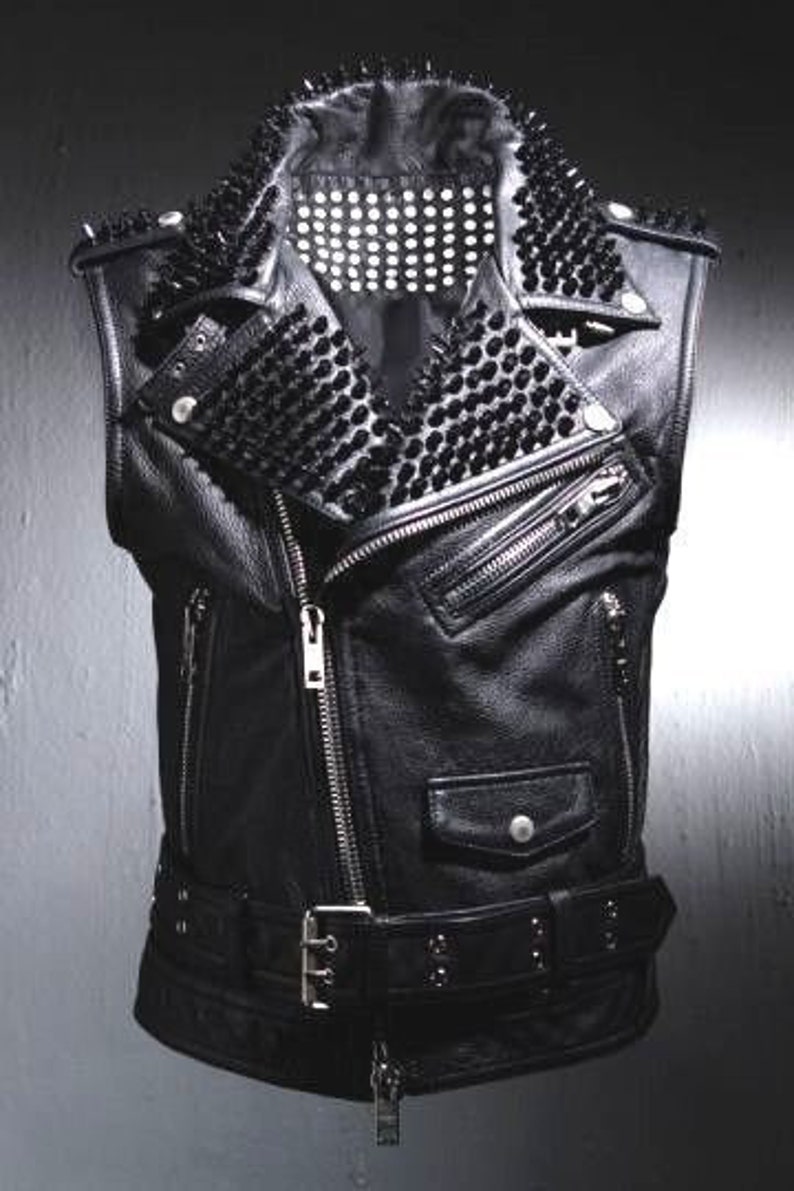 Men's Black Studs Leather Vest, Personalized Punk Long Spiked Studded Leather Jacket, Buttons Vest Black Studs And Spikes Brando Vest Jacket,