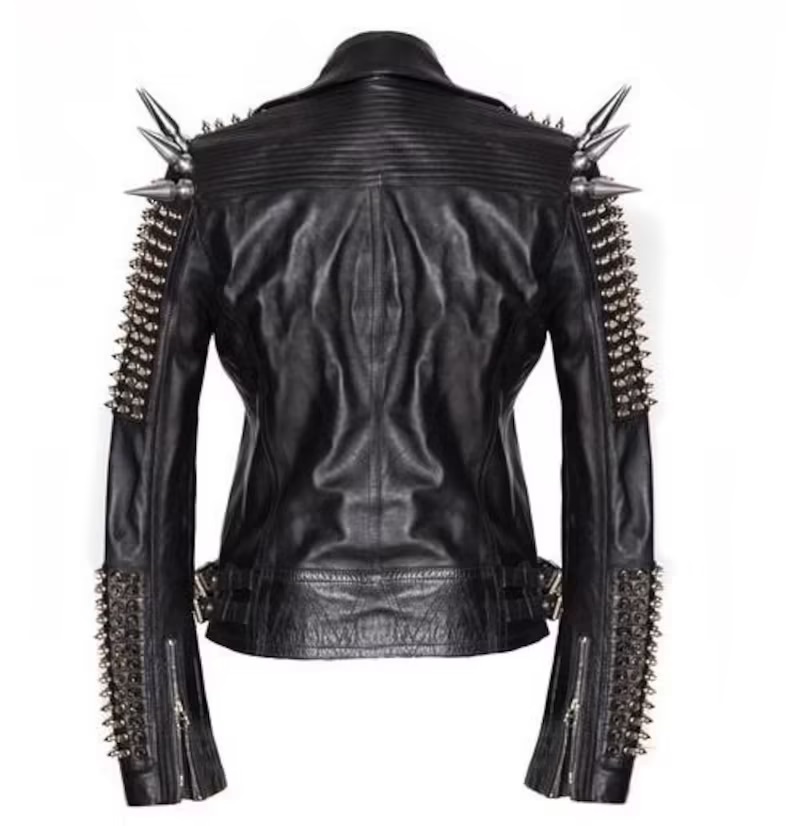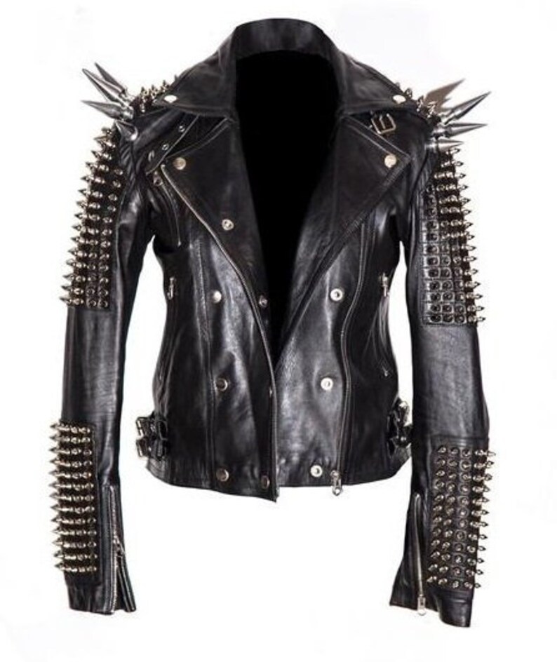 Men's Silver Studded Jacket, Black Punk Silver Long Spiked, Handmade Jacket, Cow Leather Solid Heavy Studs, Solders Belted Bikers Jacket,