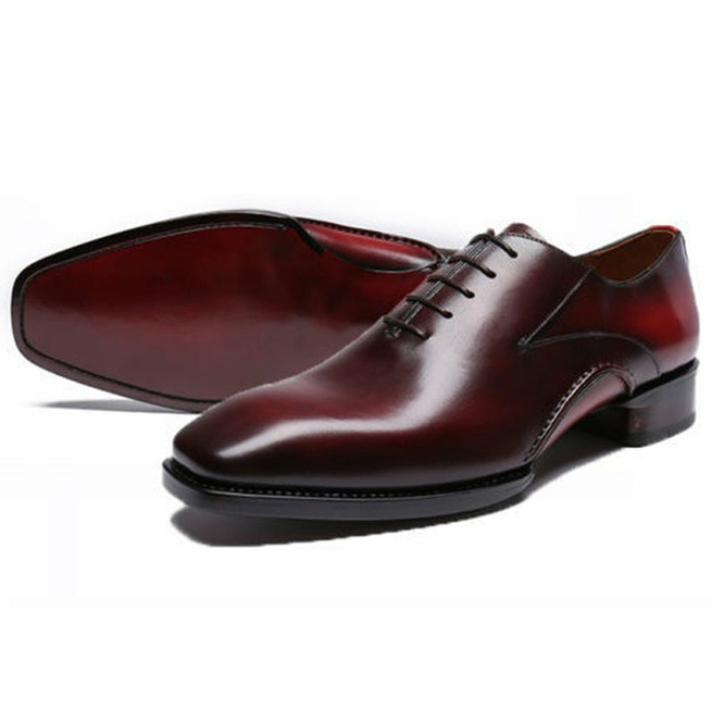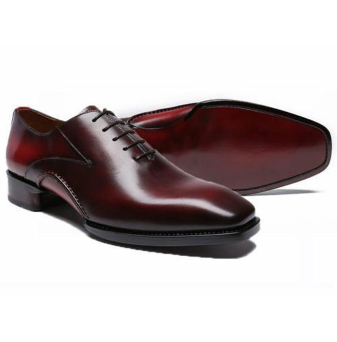 Oxford Maroon Wholecut Patina, Premium Leather Shoes, Lace Up Formal Dress Shoes