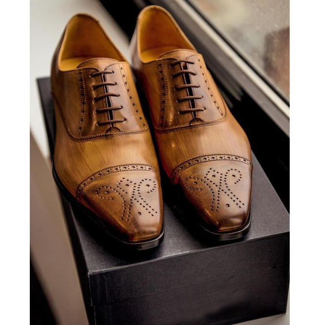 Wooden Brown Semi Brogue, Men's Customize Lace Up Formal, Handmade Dress Shoes,