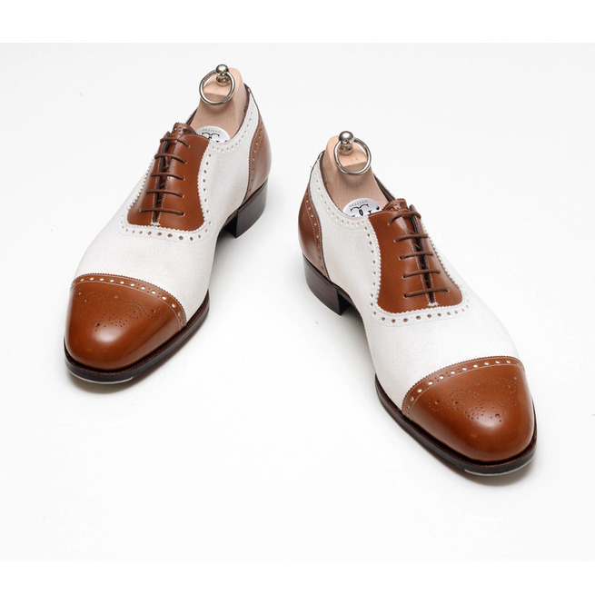 Saddle Oxford Whit Brown Semi Brogue, Pure Leather Men's Handmade Formal Shoes,