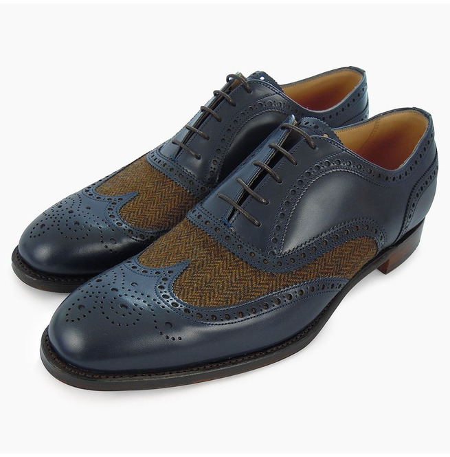 Handmade Full Brogue Wingtip, Tweed Oxford Lace Up, Men's Leather Formal Shoes,