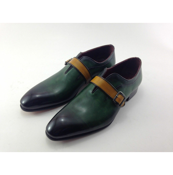 Hand Stitched Monk Patina Green, Premium Leather Single Strap, Men Dress Shoes,