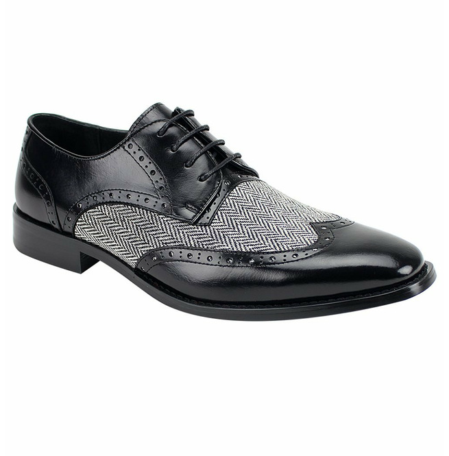 Stylish Derby Tweed Black Pure Leather Lace Up Formal Men's Handmade Shoes