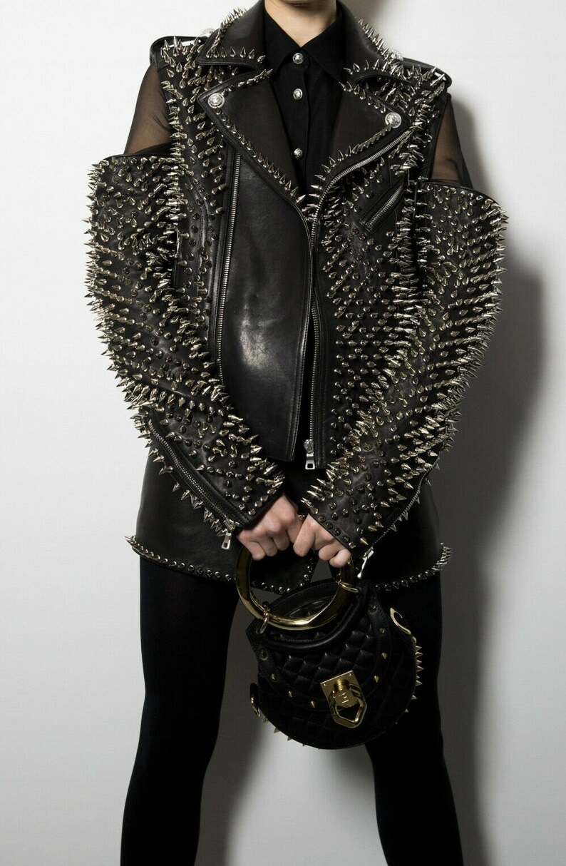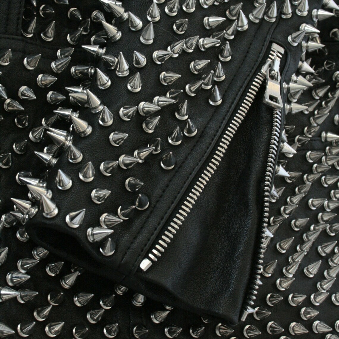 Motor Bike Handmade Silver Heavy Metal Spiked Studs, Genuine Cowhide Leather, Women Bikers Gothic Punk Jacket, Personalized Jacket,