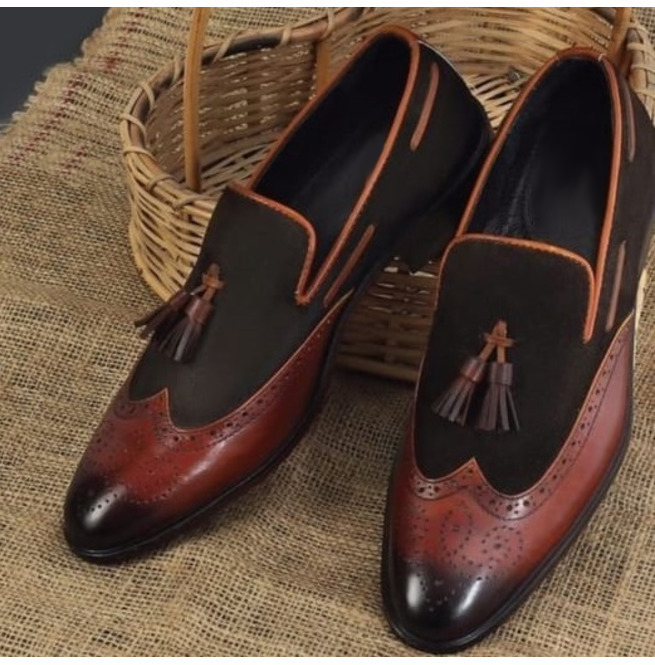 Men's Party Wear Tassels Loafer Pull On Suede Leather Handmade Wingtip Shoes