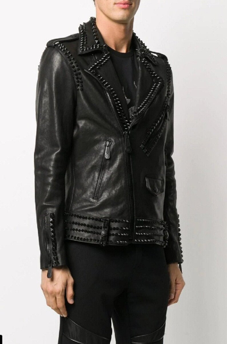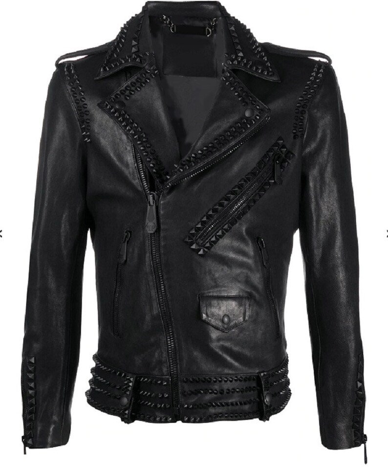 Made To Hand Black Studs Premium Cow Skin Leather, Shoulder Epaulets Men's Motor Bike Brando Style, Gothic Fashion Punk Jacket, Bikers Jacket,