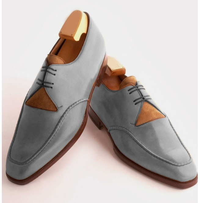 Derby Stylish Dual Color Contrast Sole Pure Leather Men's Formal Moc Toe Shoes